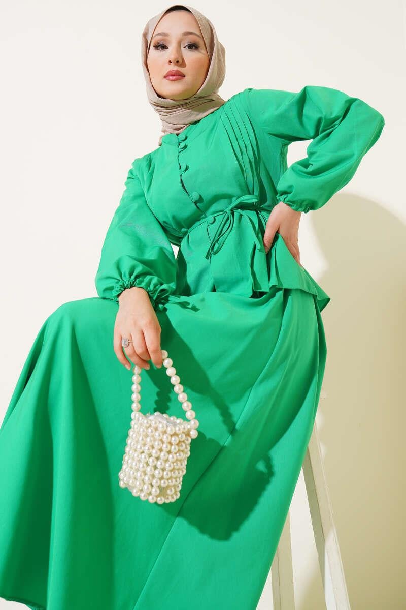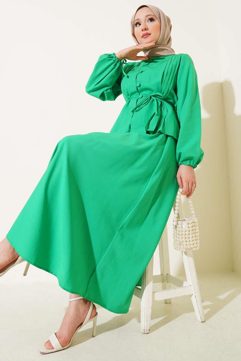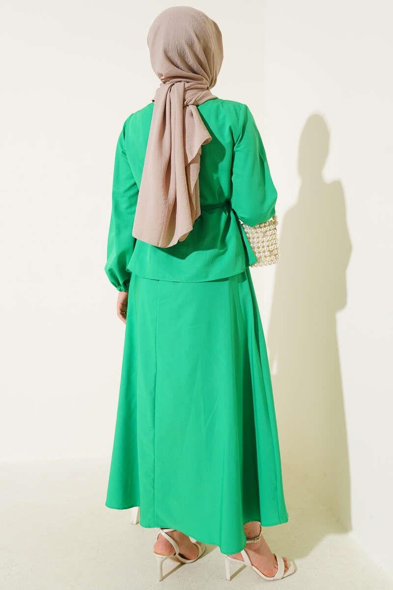 Brit Buttoned Two-Piece Skirt Set Green (0999-6242-654200)