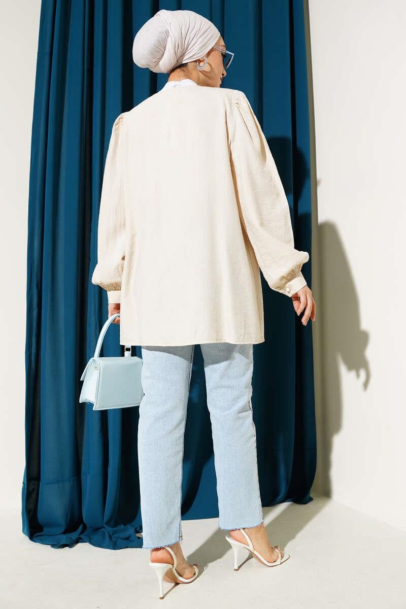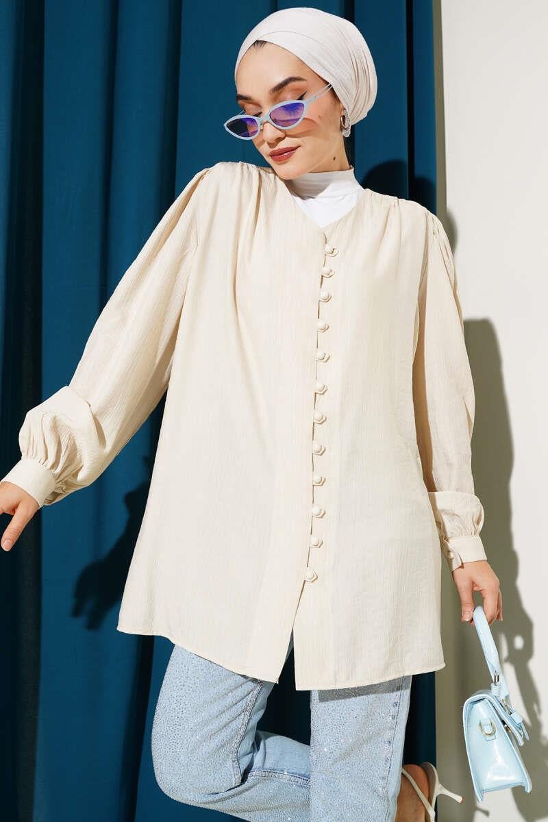 British Button-Down V-Neck Shirt Beige (0999-6221-645315)