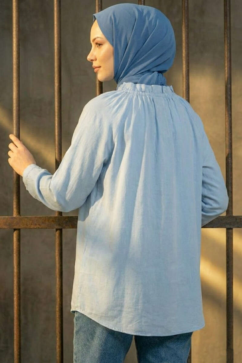 British Buttoned Collar Tie-Up Tunic Baby Blue (0999-6729-723859)