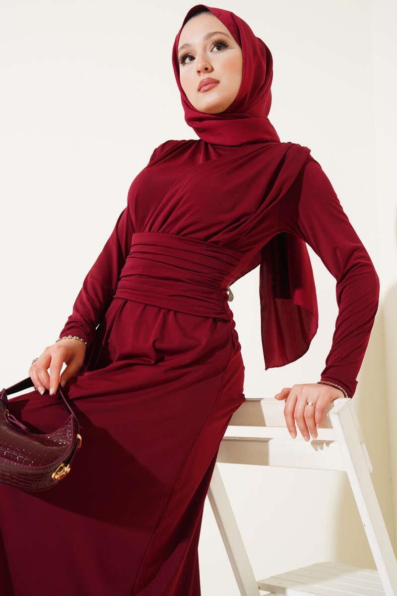 Crisscross Draped Sandy Dress Burgundy (0582-13041-643669)
