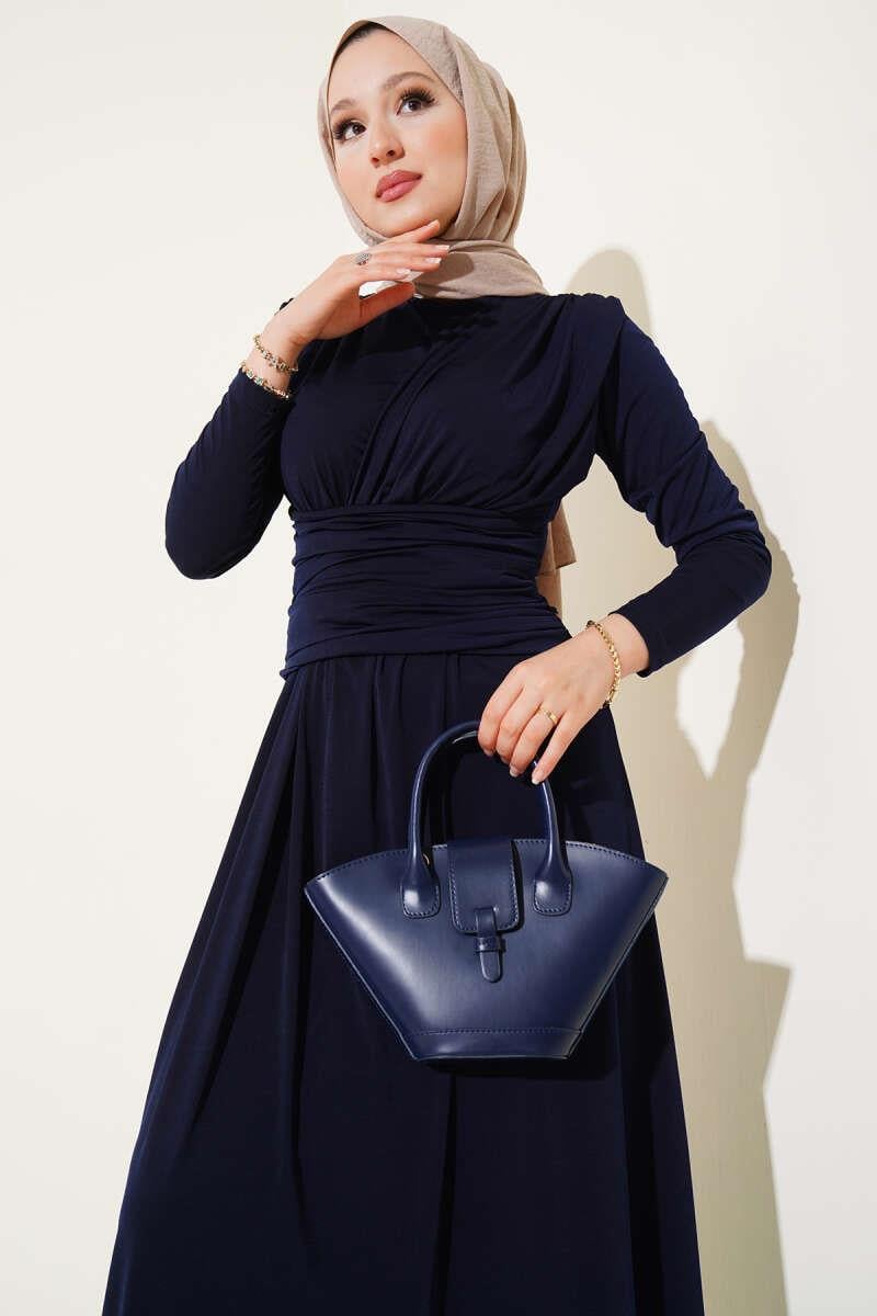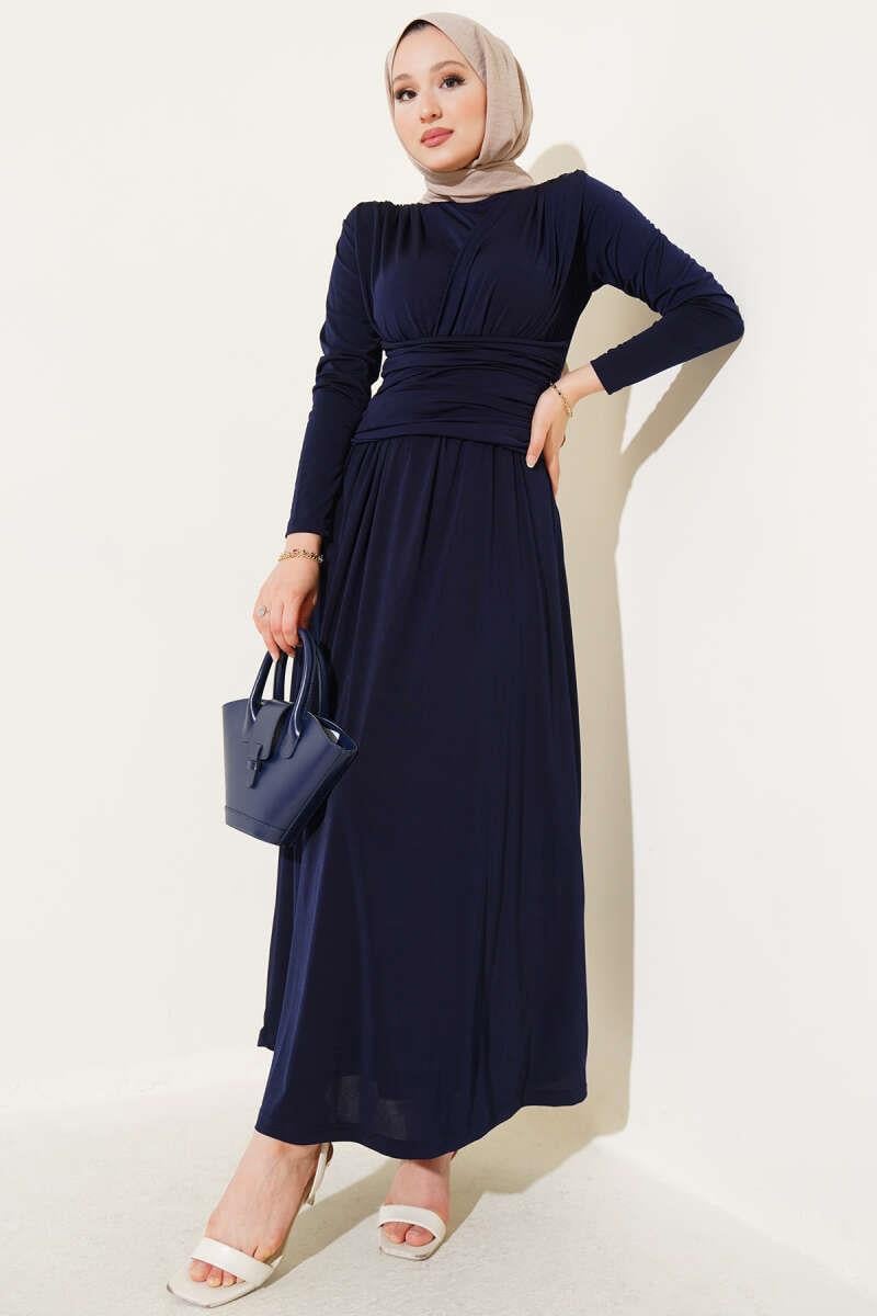 Cross Draped Sandy Dress Navy Blue (0582-13041-643673)