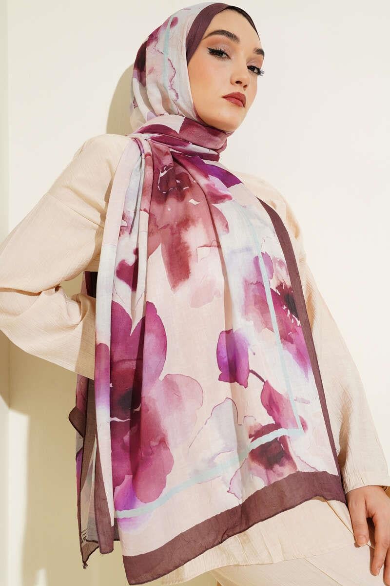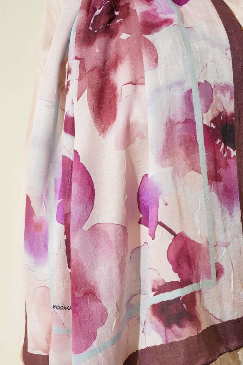 Floral Patterned Bamboo Shawl Bitter Coffee (8093-2015-639463)
