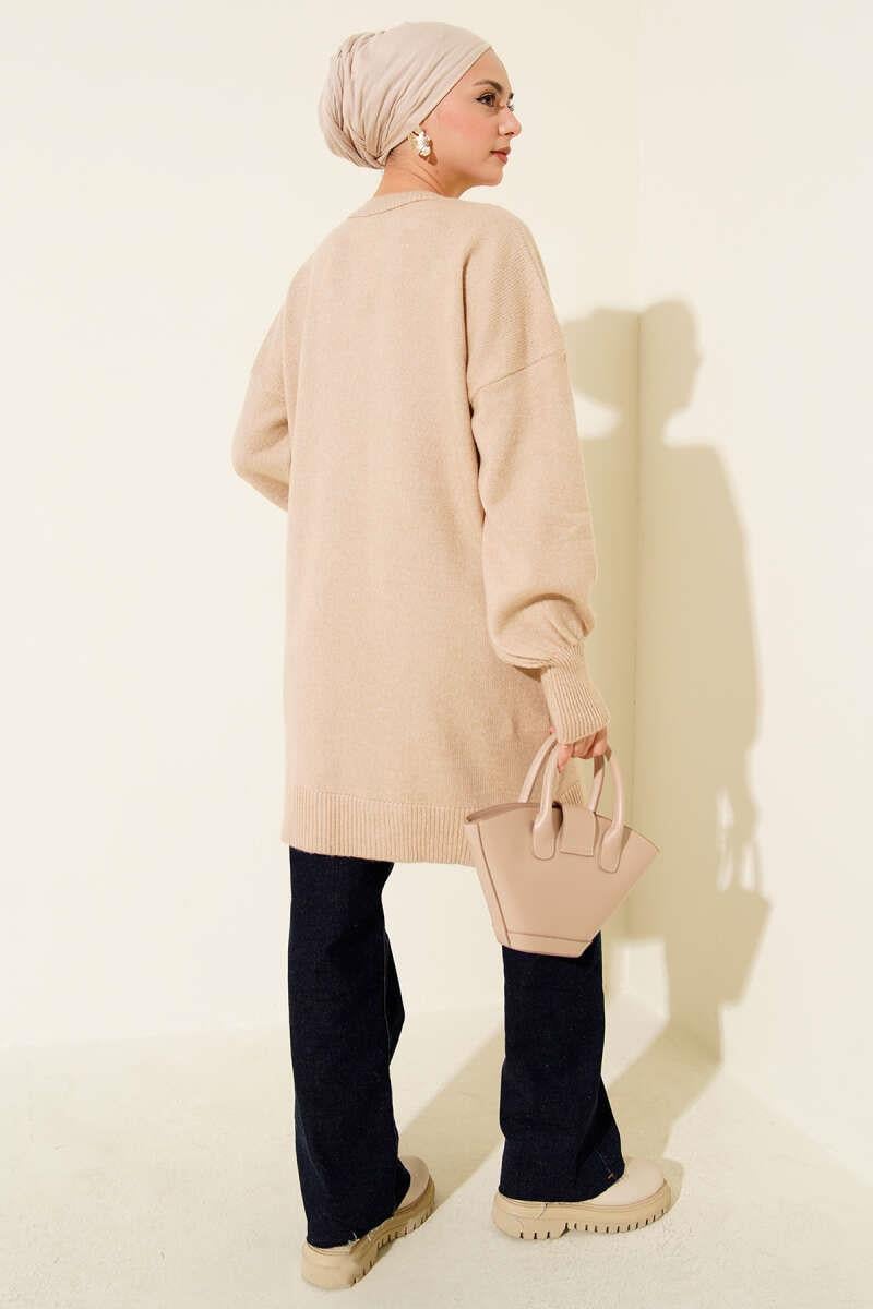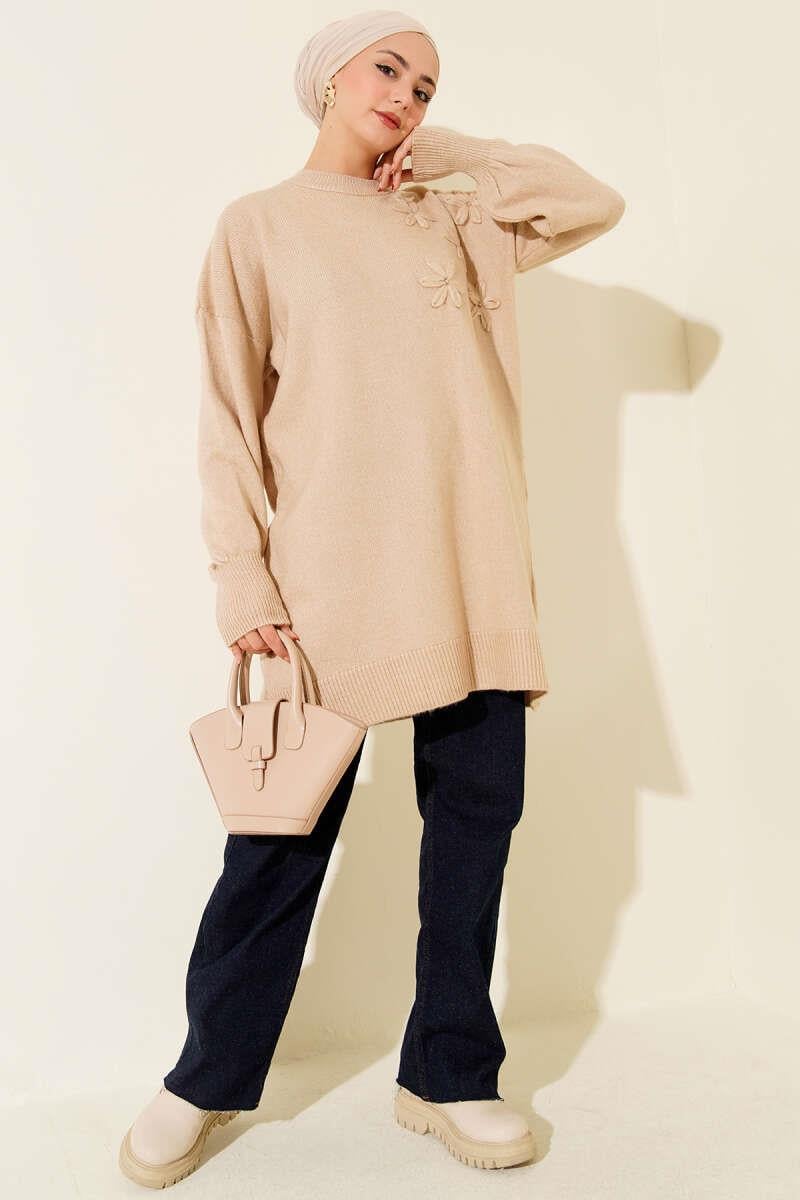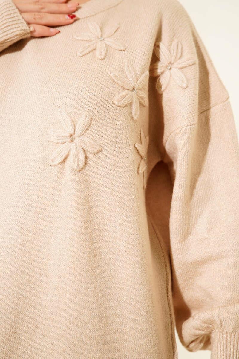 Flower Detailed Soft Knit Tunic Latte (0589-6011-678051)