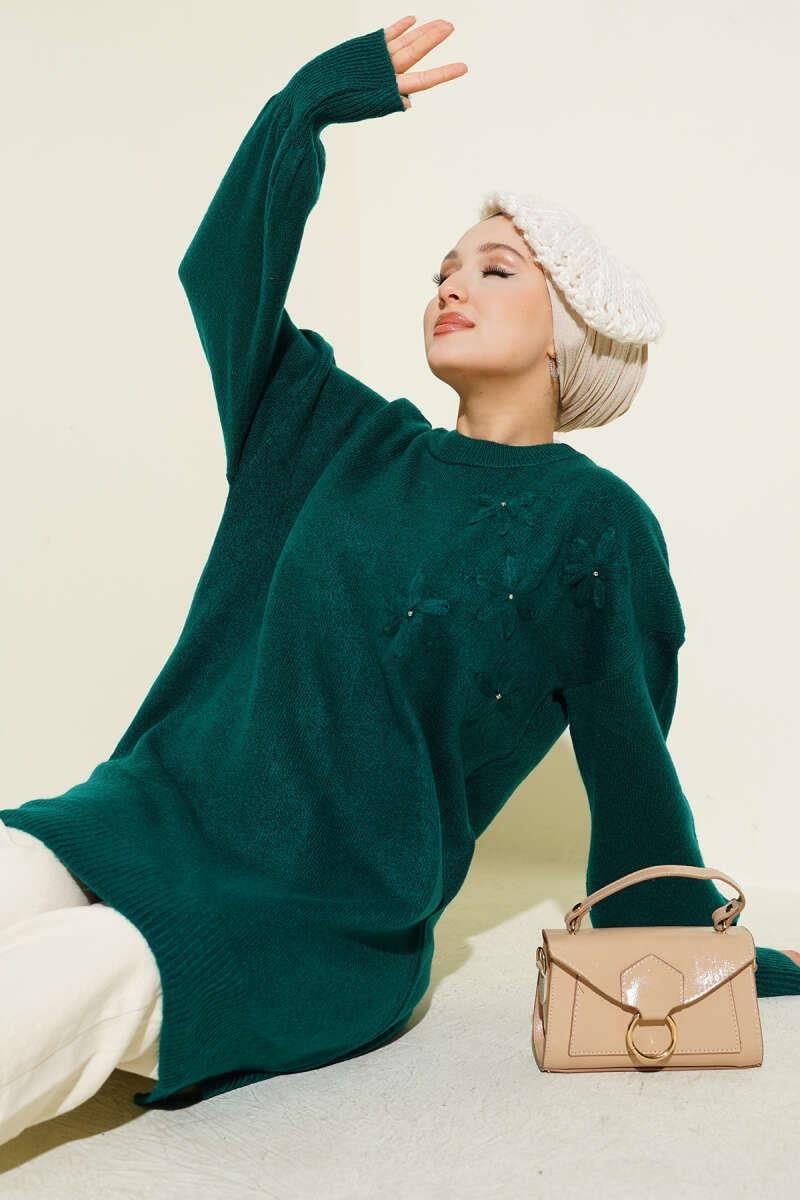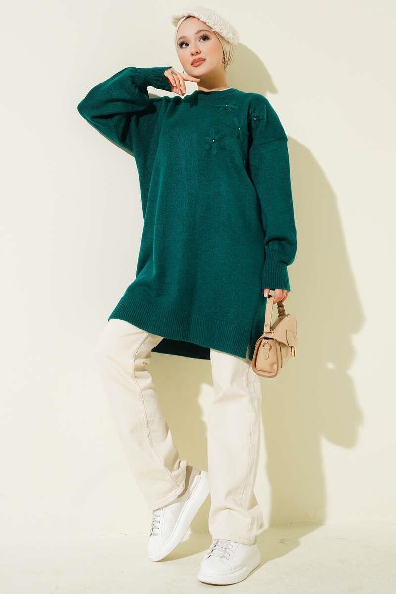 Flower Detailed Soft Knit Tunic Nefti (0589-6011-678052)