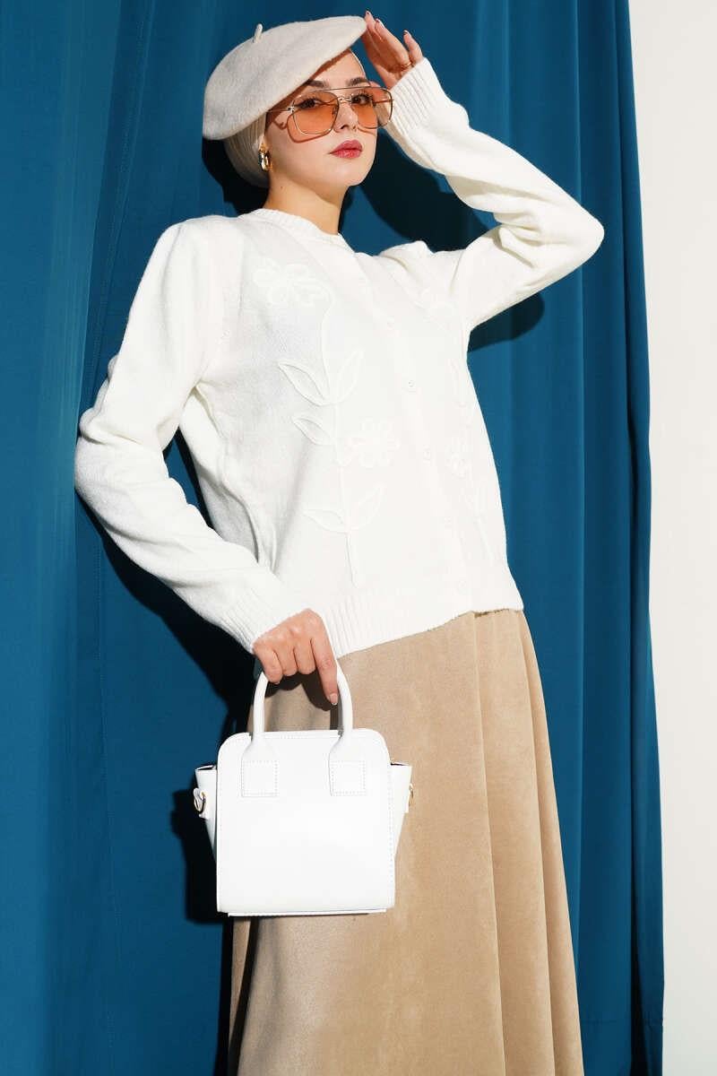 Flower Embroidered Short Knit Cardigan Ecru (8374-0925-686217)