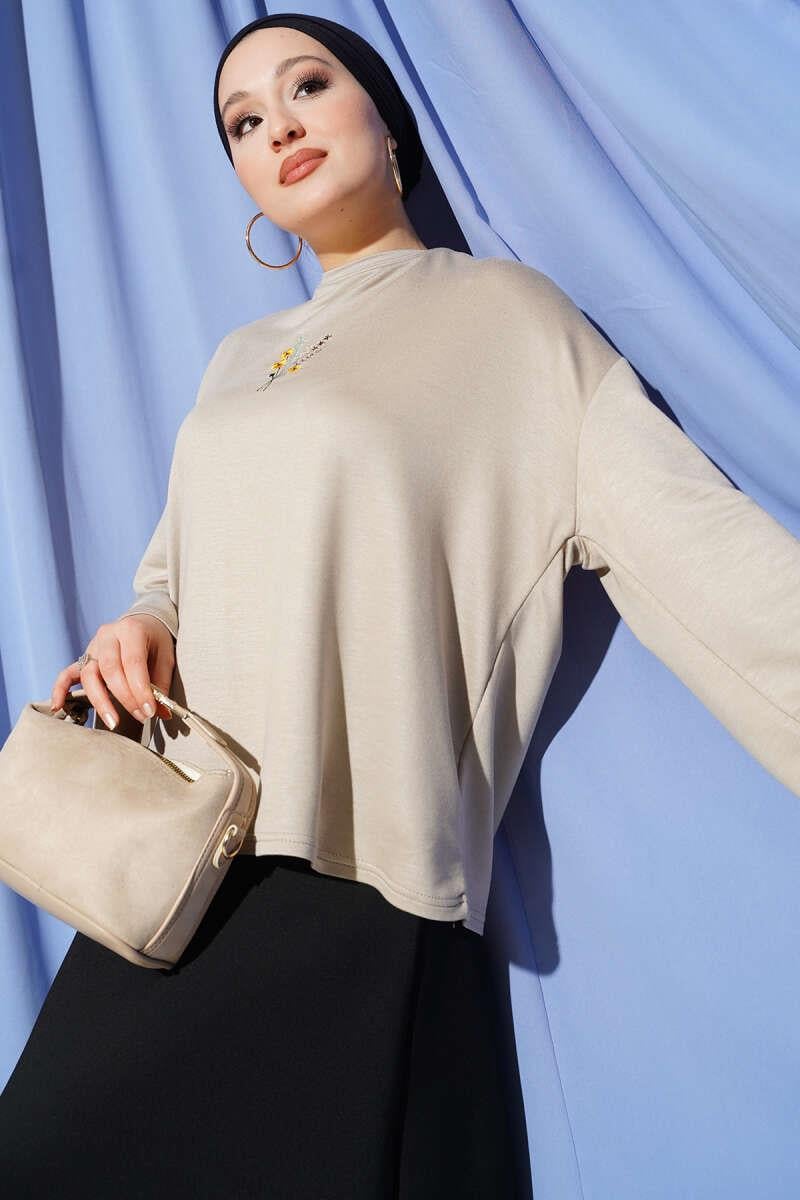 Floral Embroidered Loisha Blouse, Beige (0582-13137-713156)