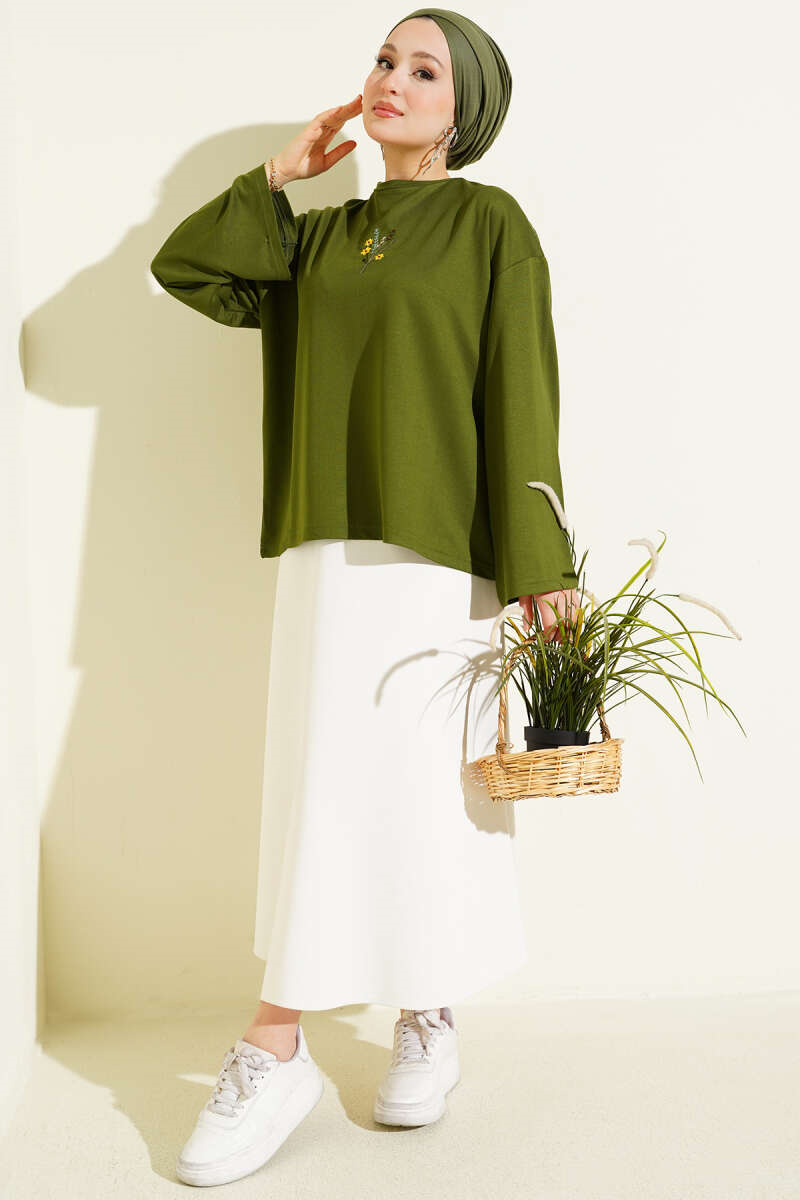 Floral Embroidered Loisha Blouse, Green (0582-13137-726974)