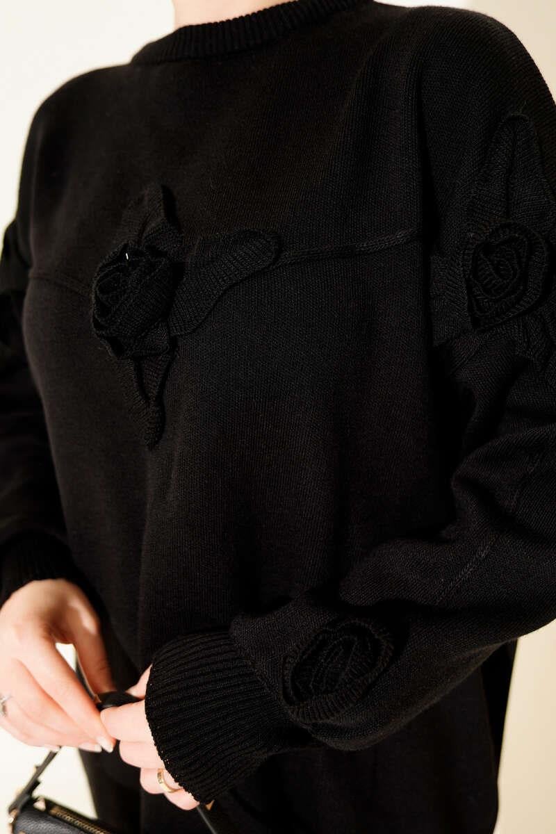 Floral Embroidered Knit Sweater Black (0537-6881-679614)