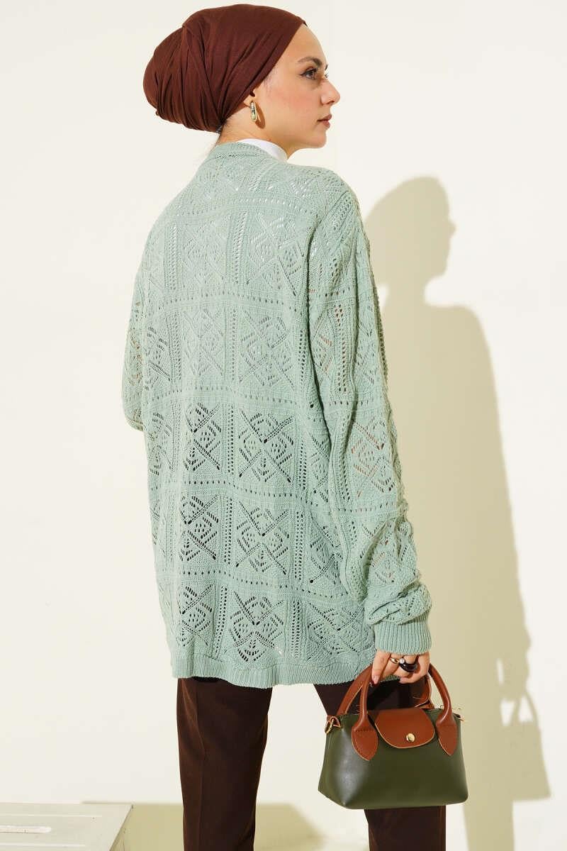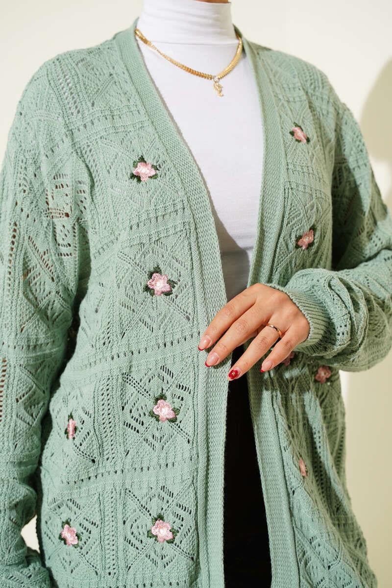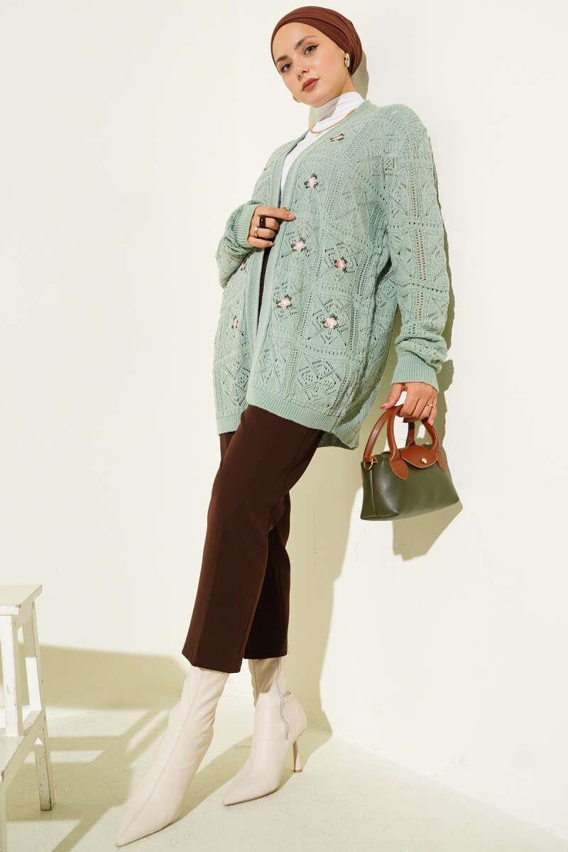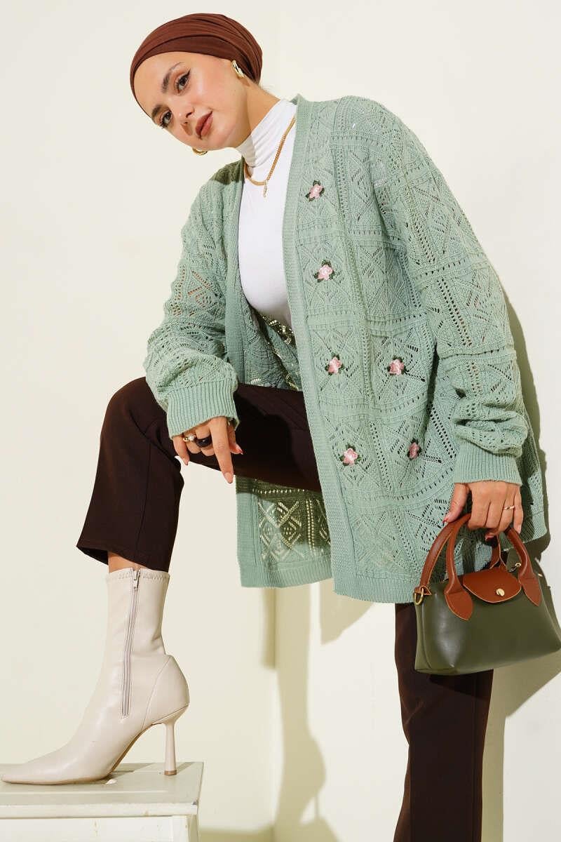 Floral Embroidered Knitted Sweater Cardigan Mint (8374-0104-677481)