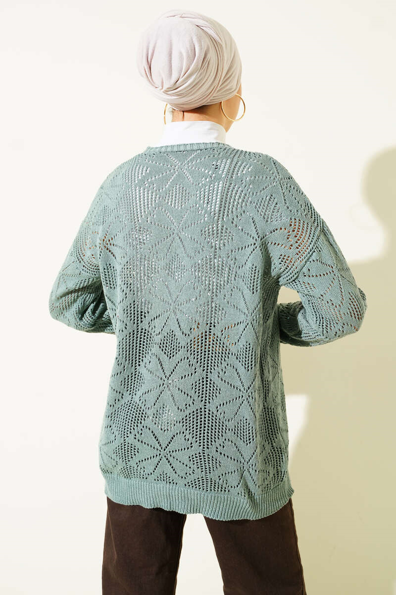 Floral Knit Buttoned Cardigan Mint