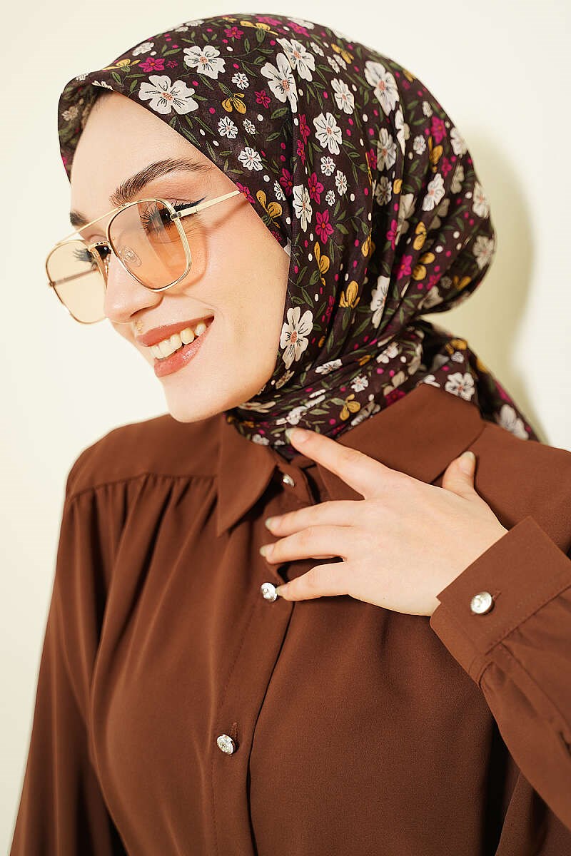 Flower Embellished Scarf Coffee (0141-6511-751561)
