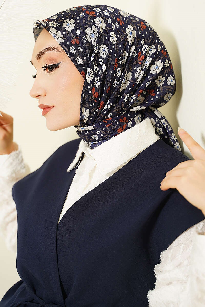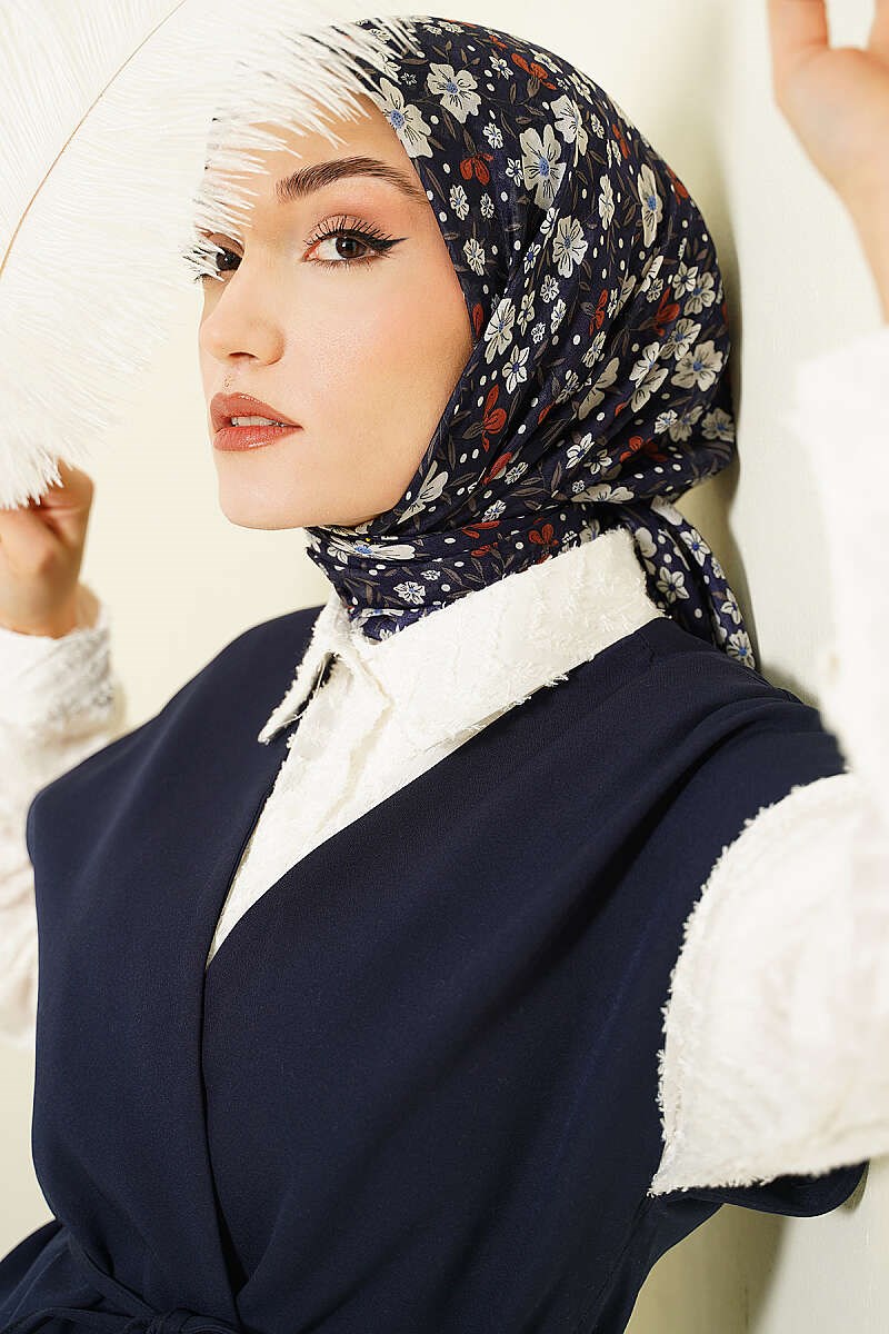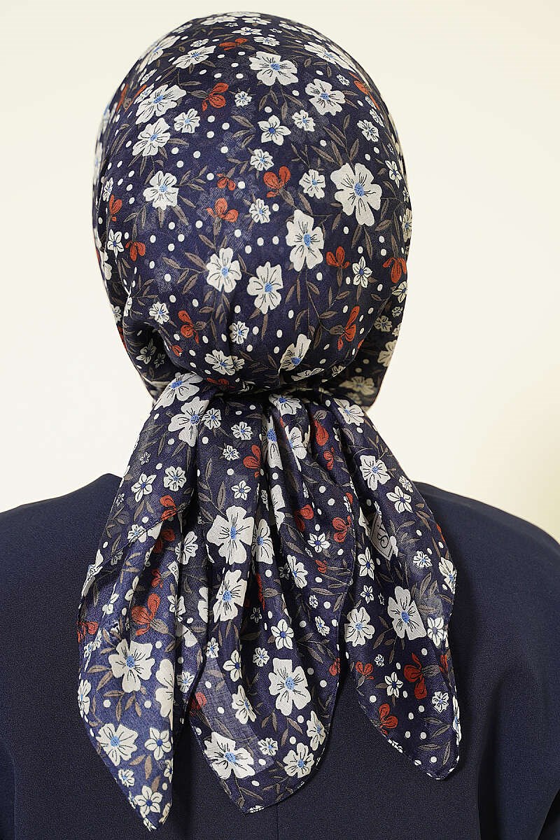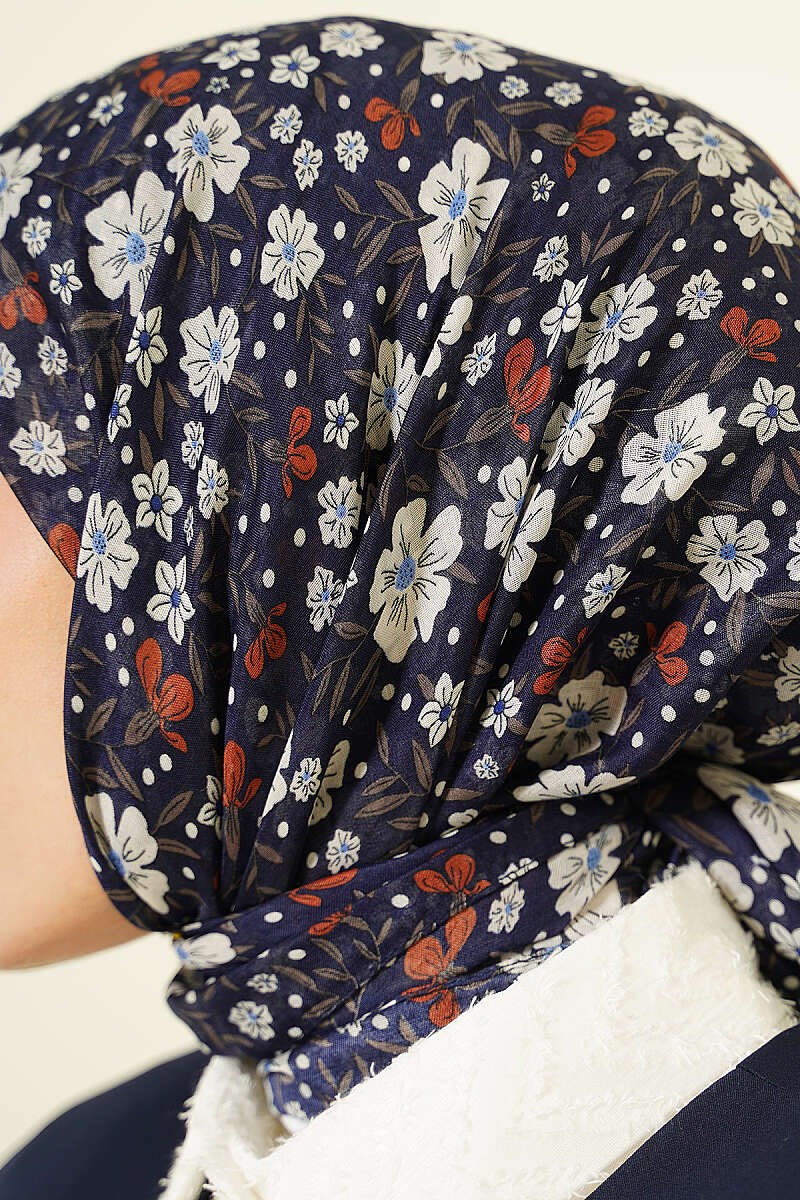 Navy Blue Scarf with Floral Embellishments (0141-6511-751562)