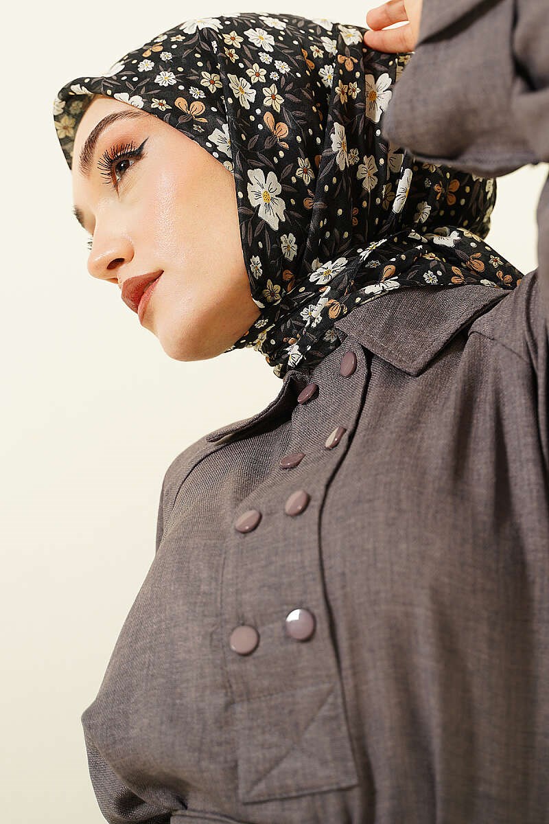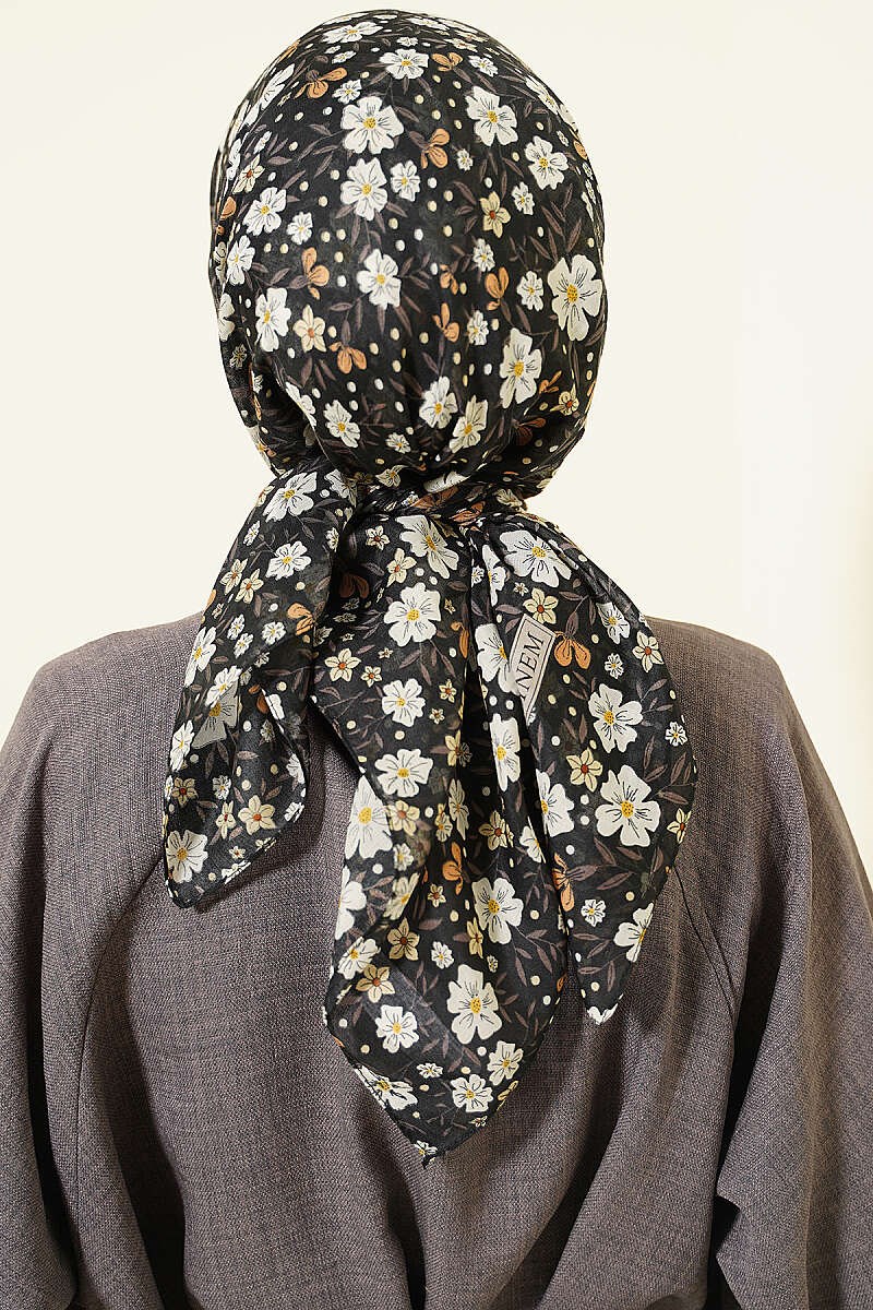 Floral Embellished Scarf Black and Off-White (0141-6511-751570)