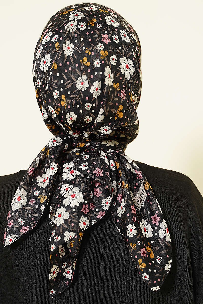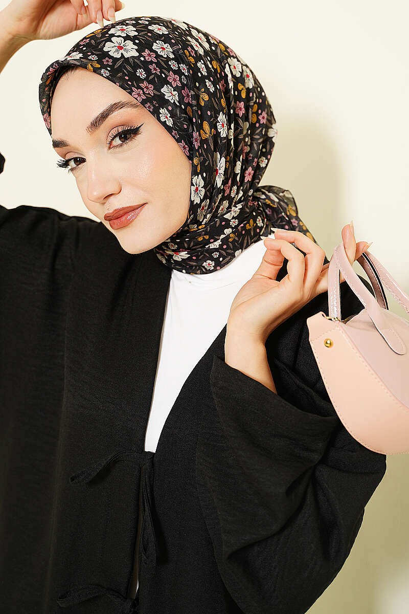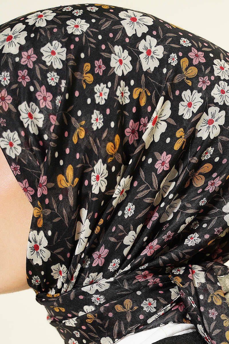 Flower Embellished Scarf with Black Stones (0141-6511-751571)