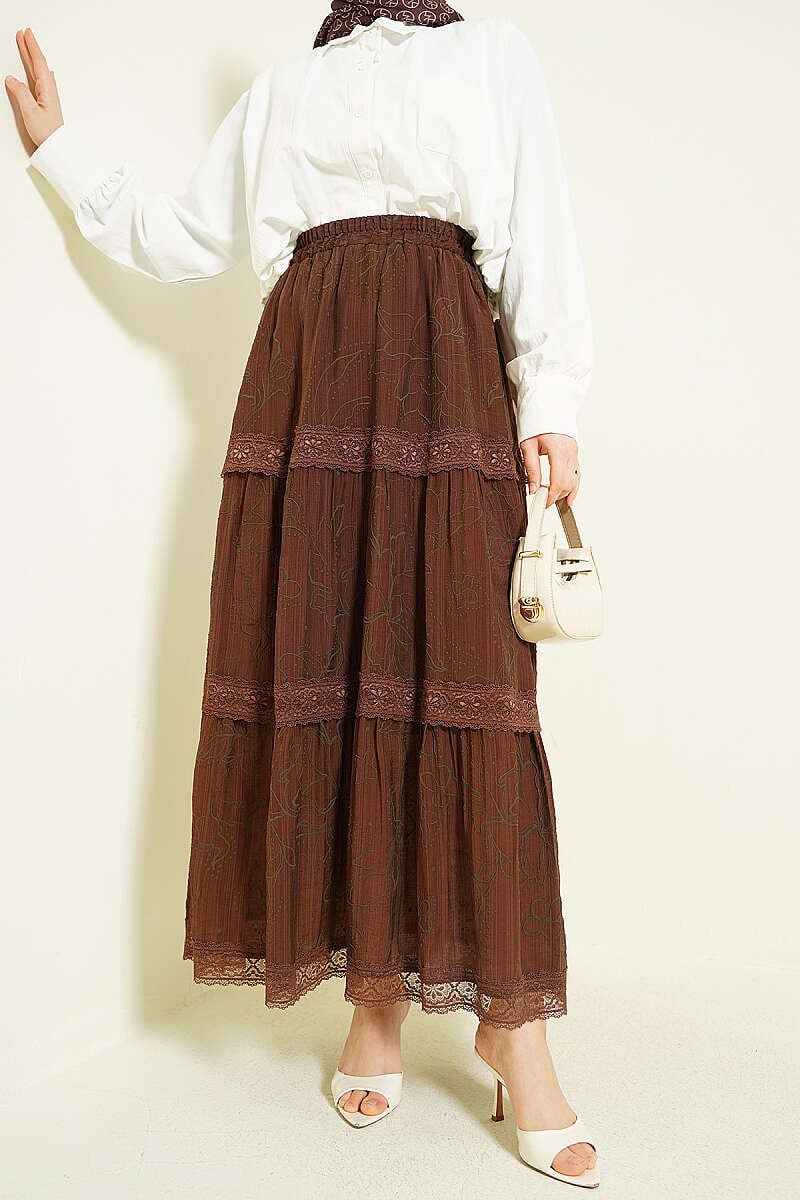 Floral Lace Skirt Coffee (0878-37227-751496)