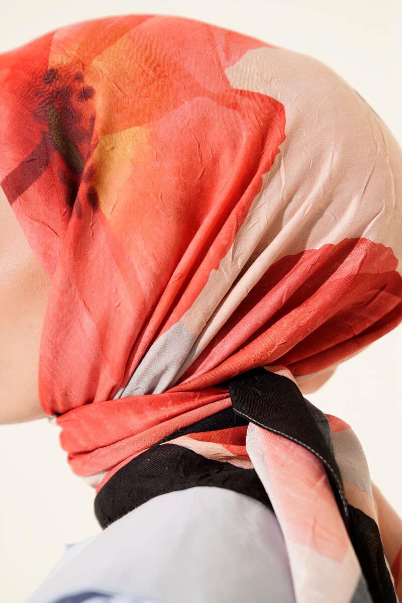 Floral Striped Bamboo Knit Scarf Red (8093-1041-674686)