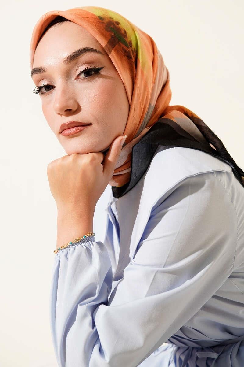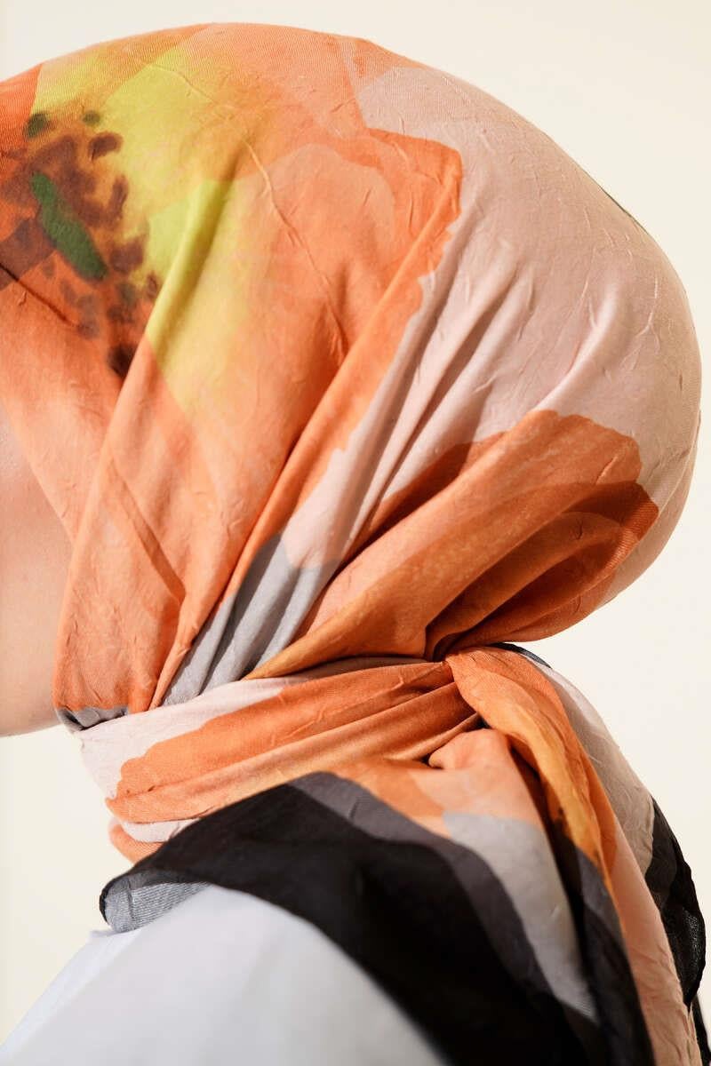 Floral Striped Bamboo Knit Scarf Orange (8093-1041-674691)