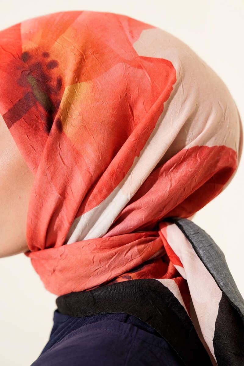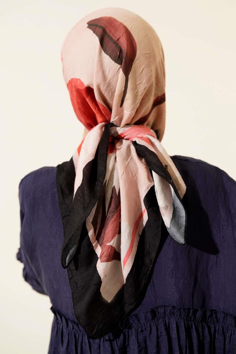 Floral Striped Bamboo Knit Scarf Black Beige (8093-1041-674716)