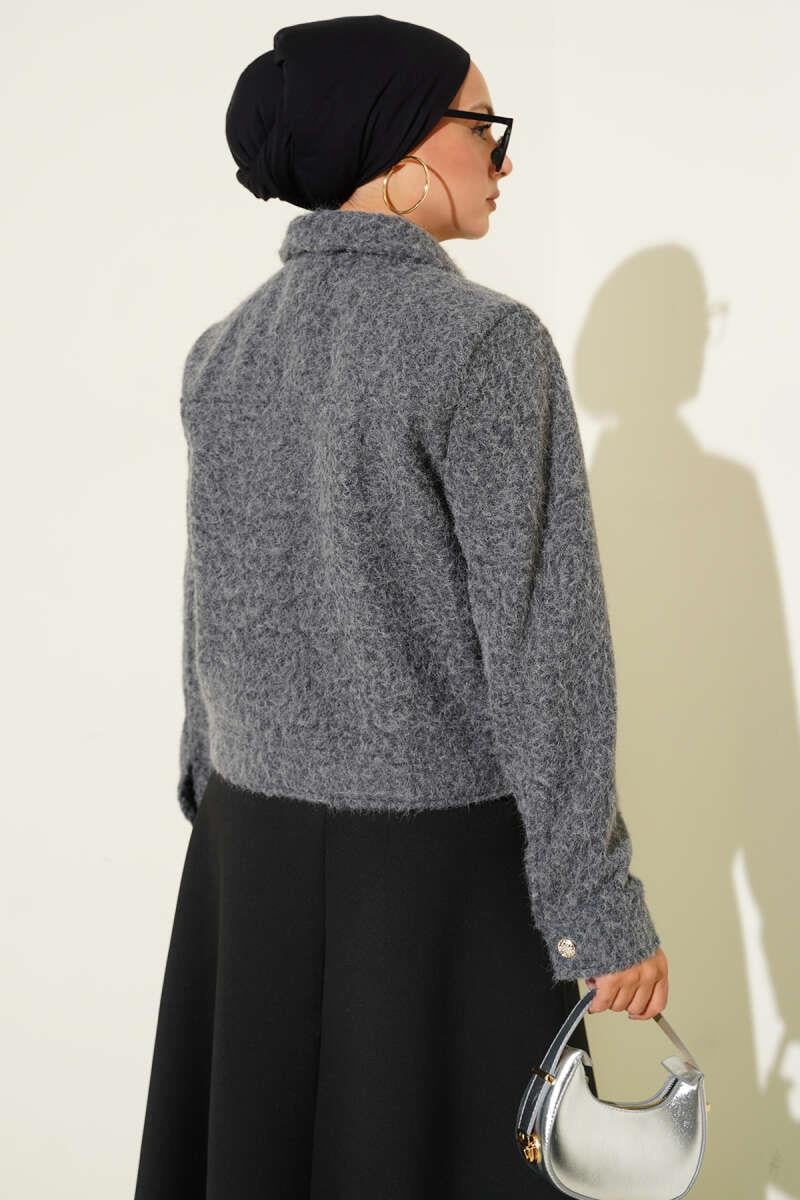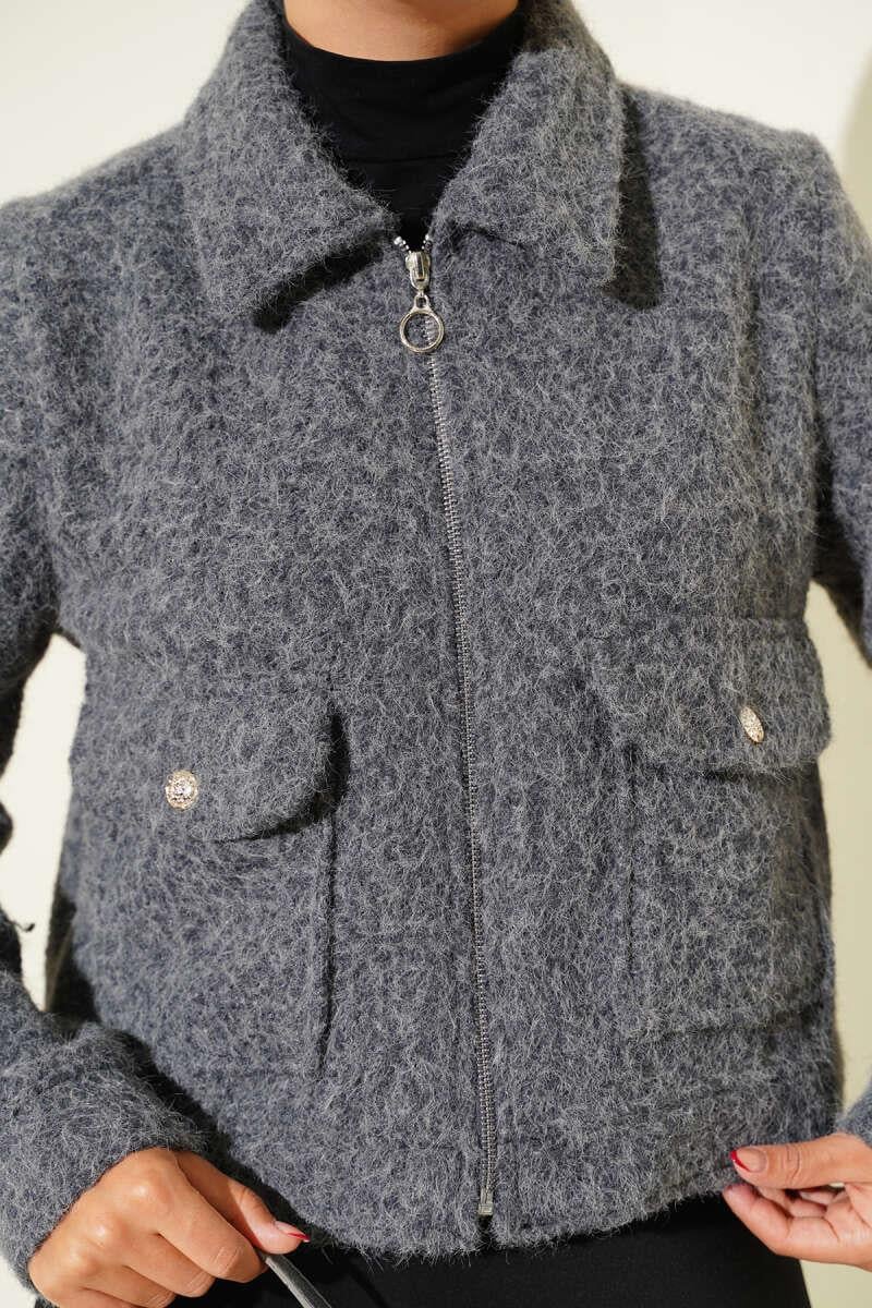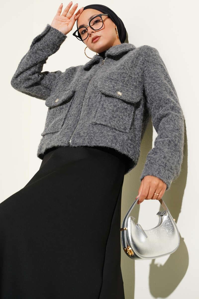 Double Pocket Zippered Short Jacket in Smoke (0569-3214-673130)