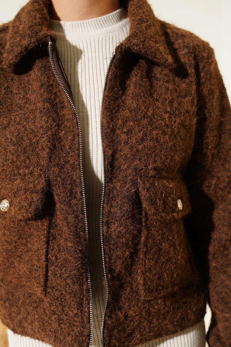 Double Pocket Zippered Short Jacket Brown (0569-3214-673138)