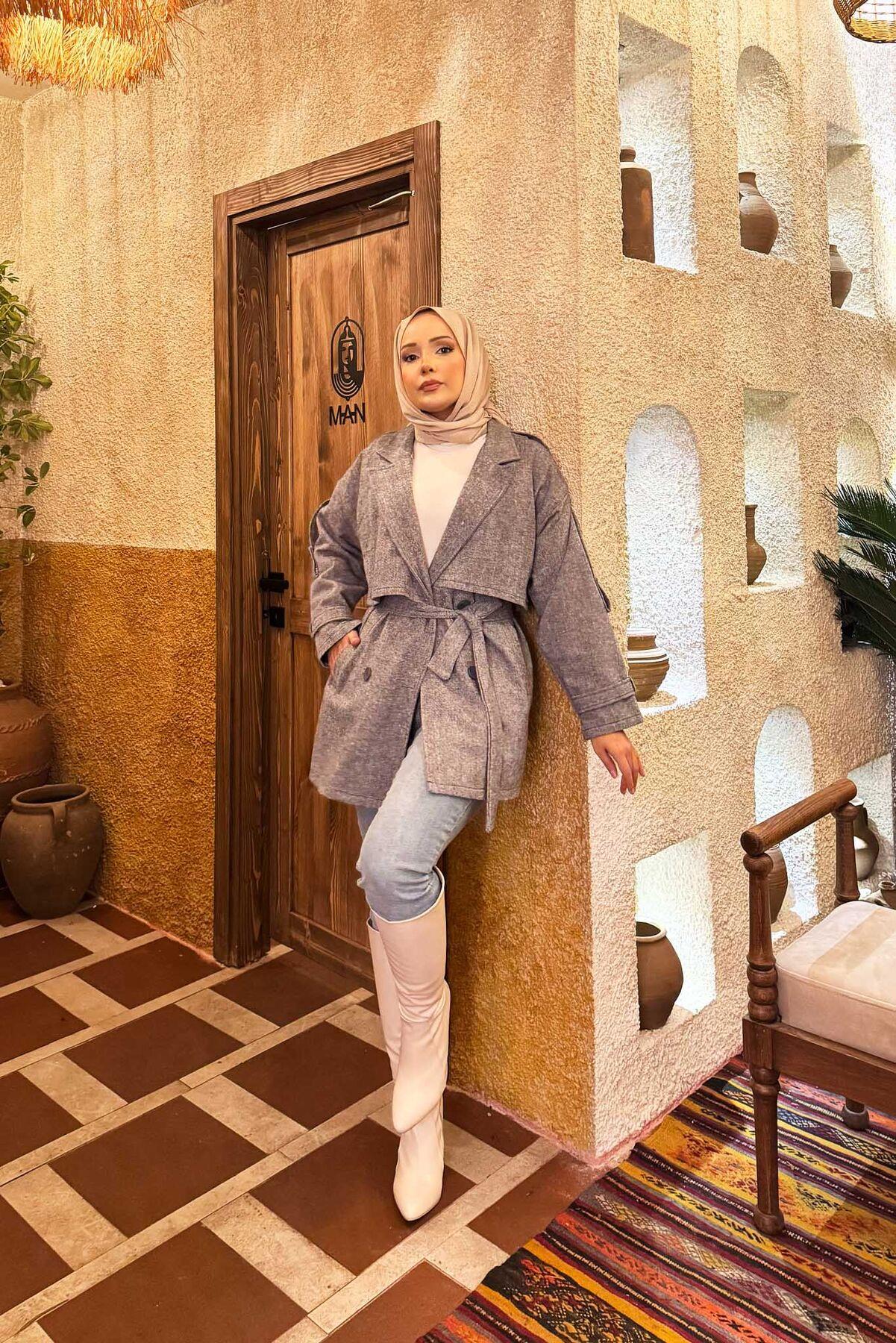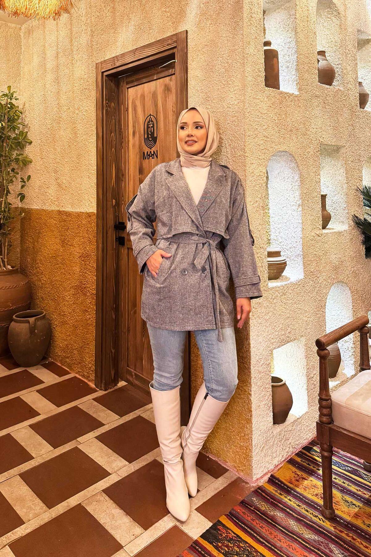 Double Buttoned Lined Short Trench Coat Indigo (125M01921185R2438)