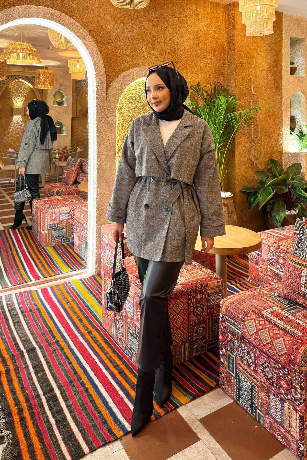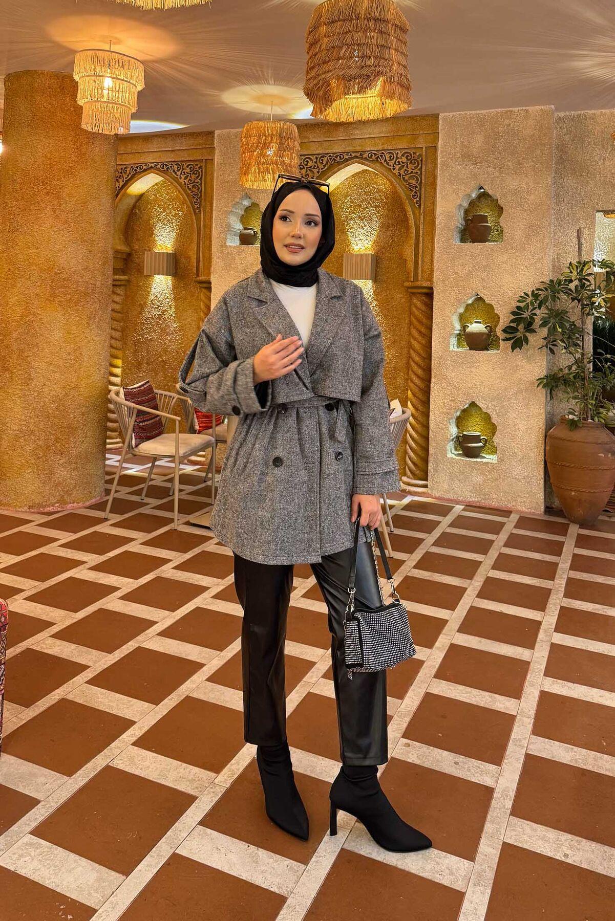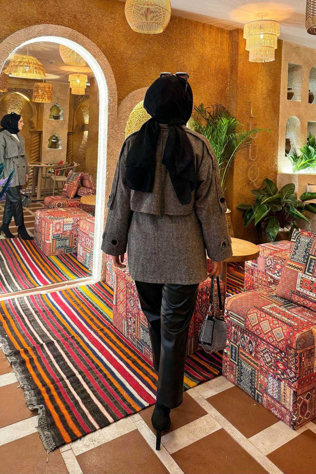 Double-Buttoned Lined Short Trench Coat Black (125M01921185R5238)