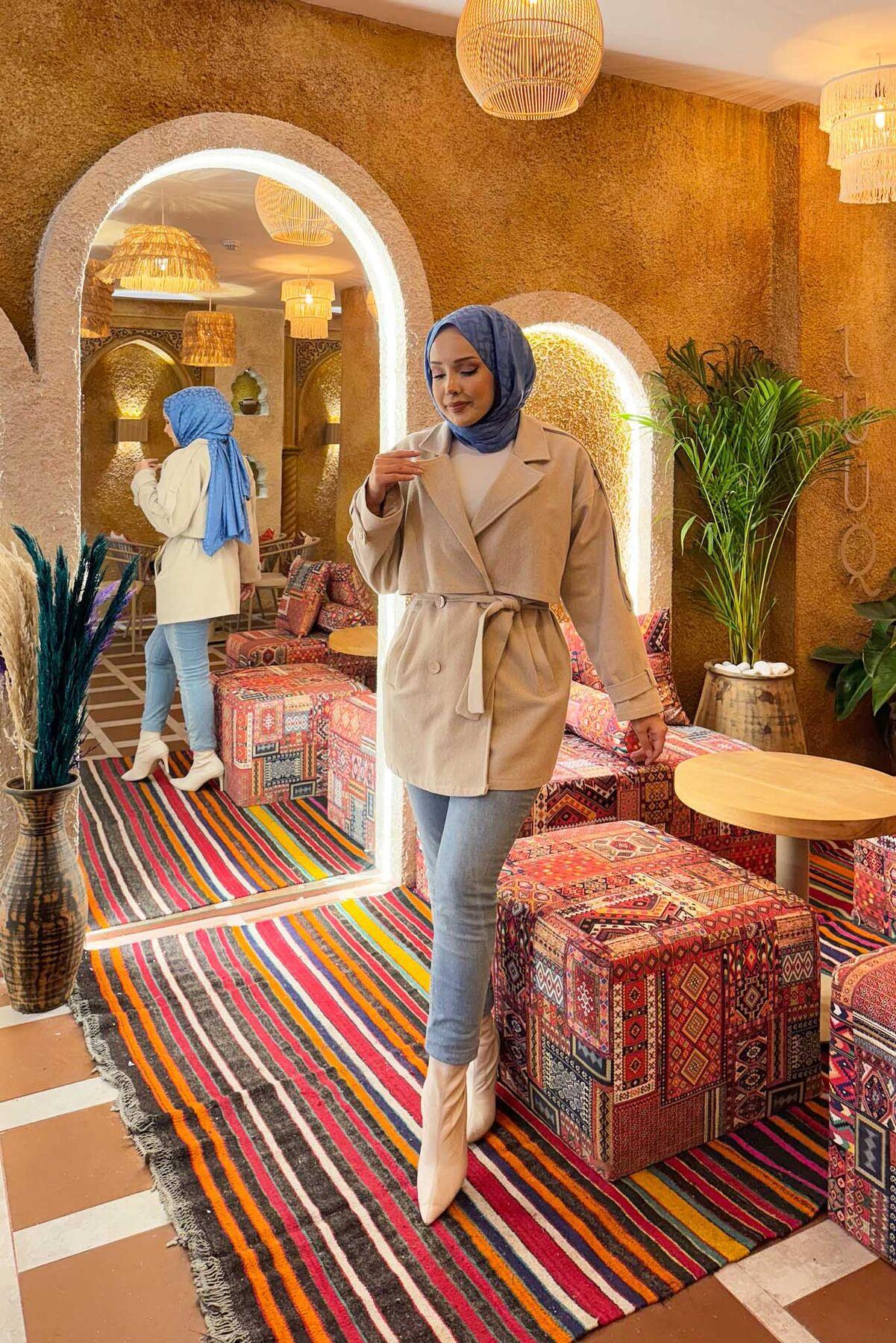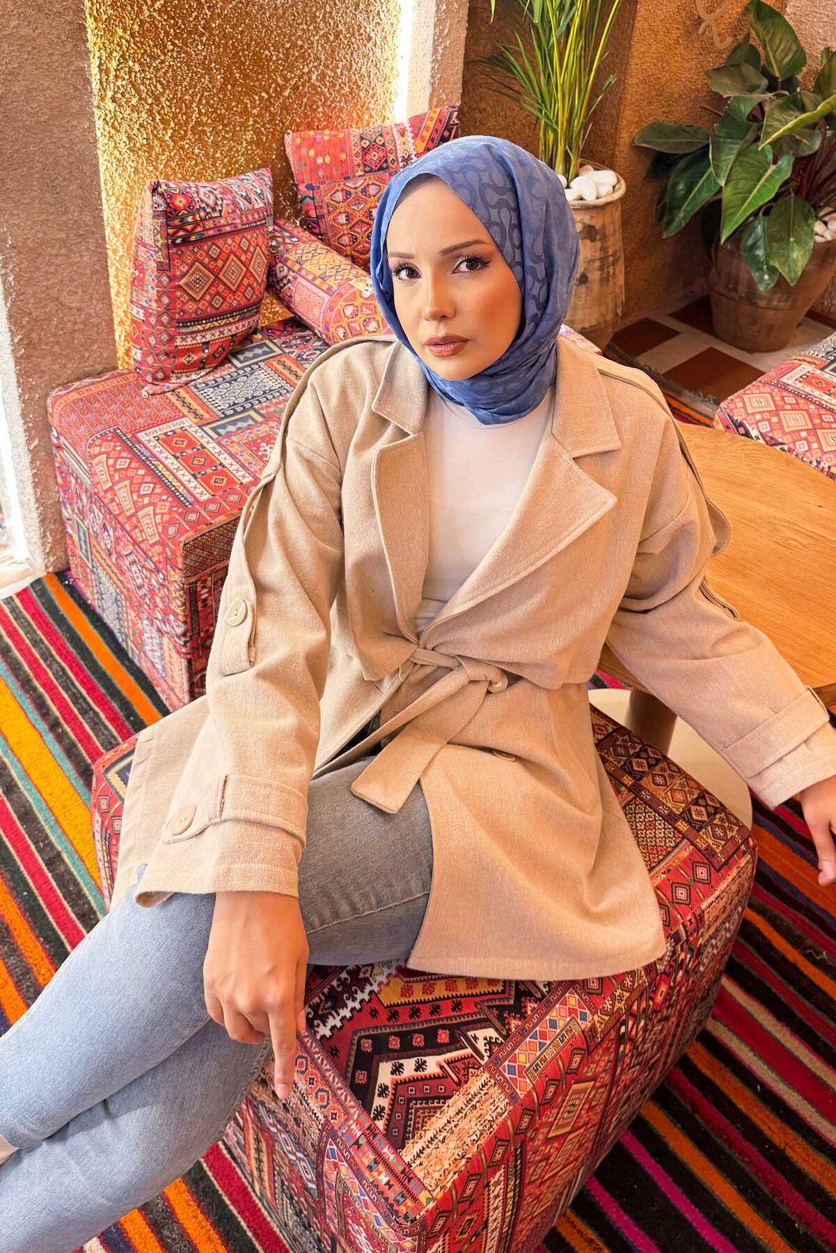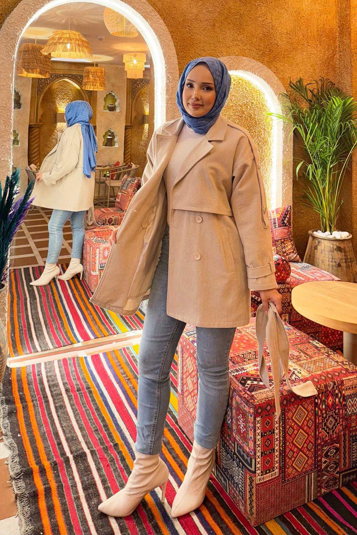 Double Buttoned Lined Short Trench Coat Stone (125M01921185R5938)