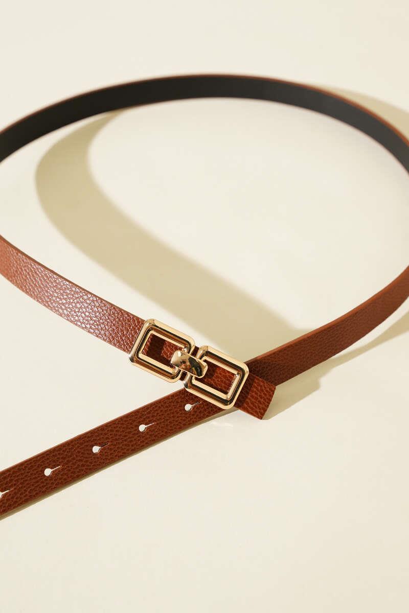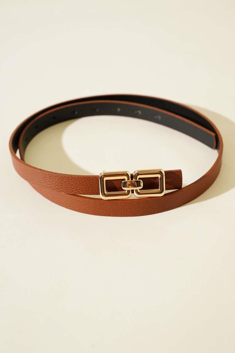 Double Square Buckle Belt, Tan (0678-613-598922)
