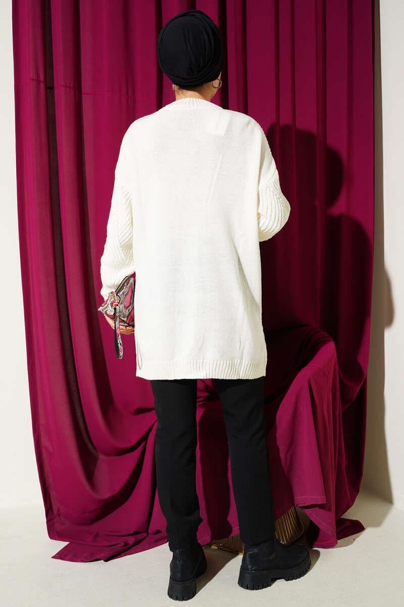 Striped Diamond Pattern Knitwear Tunic Ecru (0875-4444-670258)