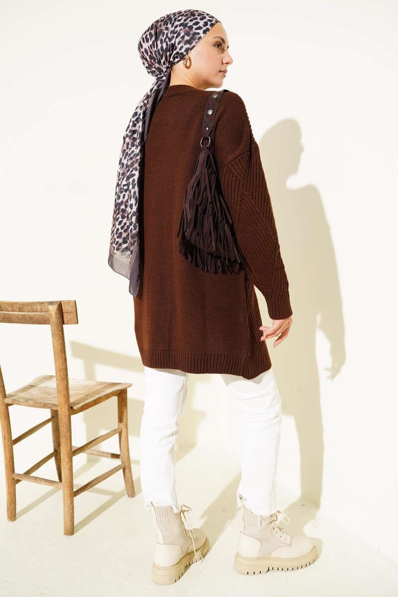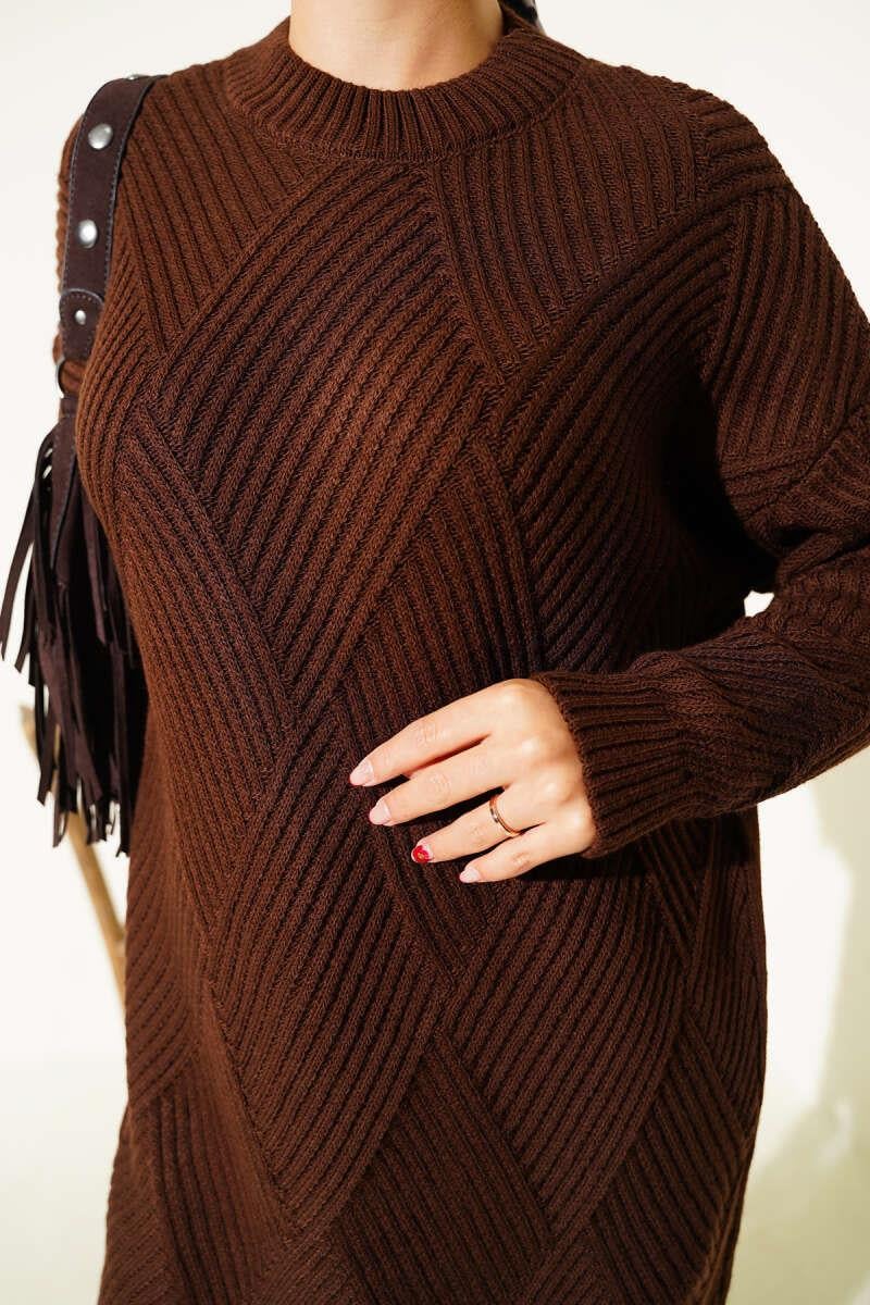 Striped Diamond Pattern Knitwear Tunic Brown (0875-4444-676401)