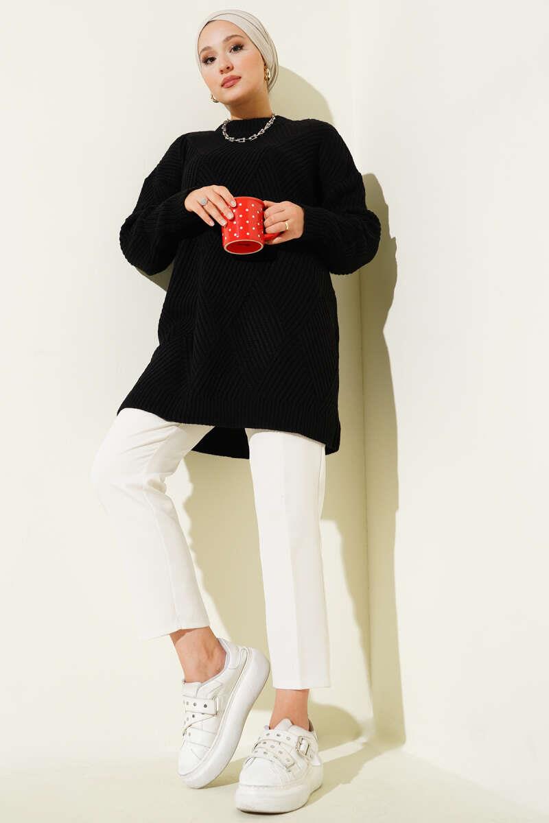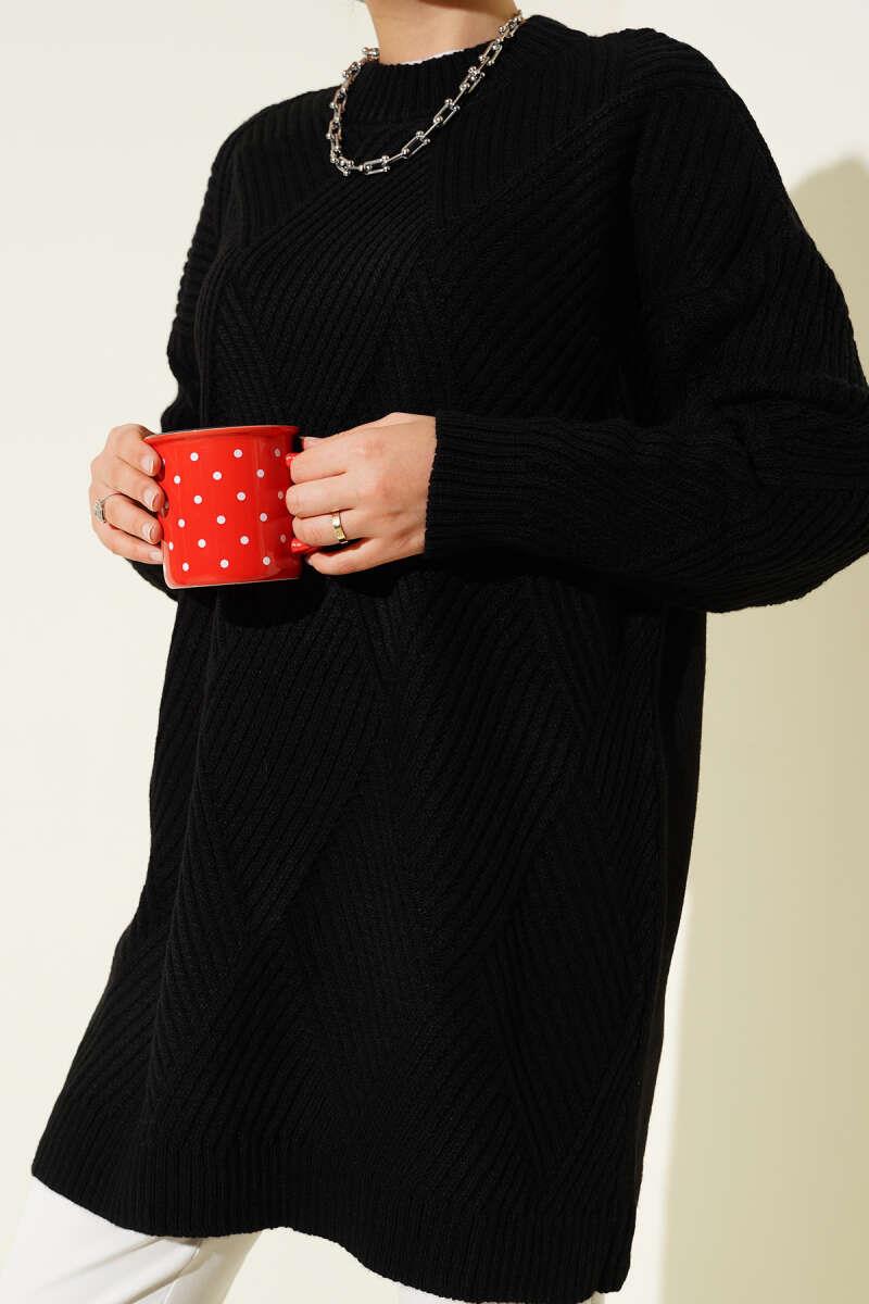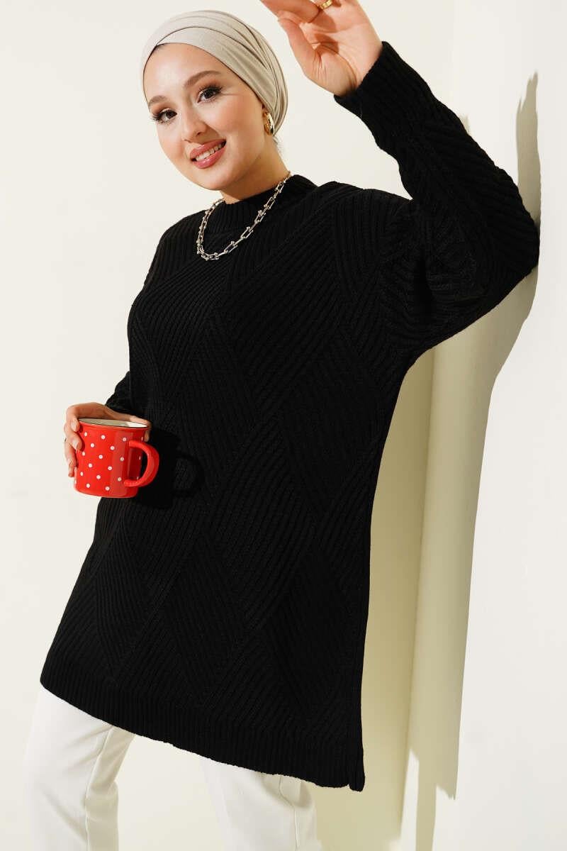 Striped Diamond Pattern Knitwear Tunic Black (0875-4444-670263)