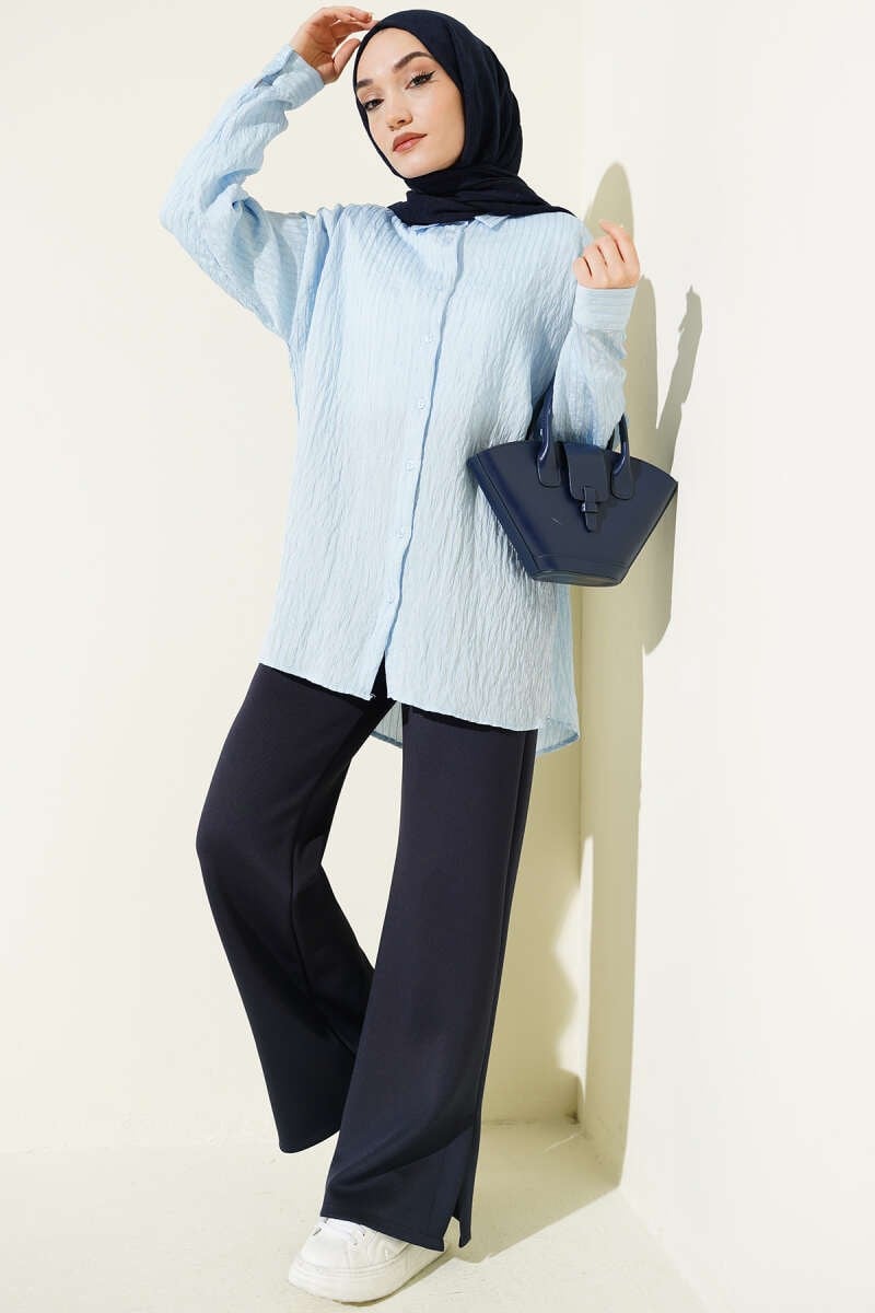 Çizgi Dikişli Pullu Oversize Gömlek Bebe Mavi (0674-874-741990)
