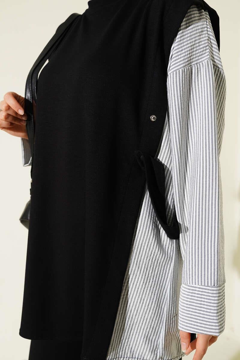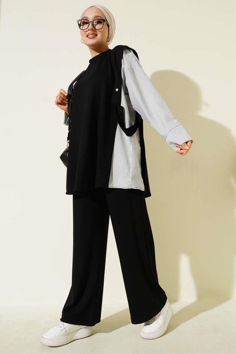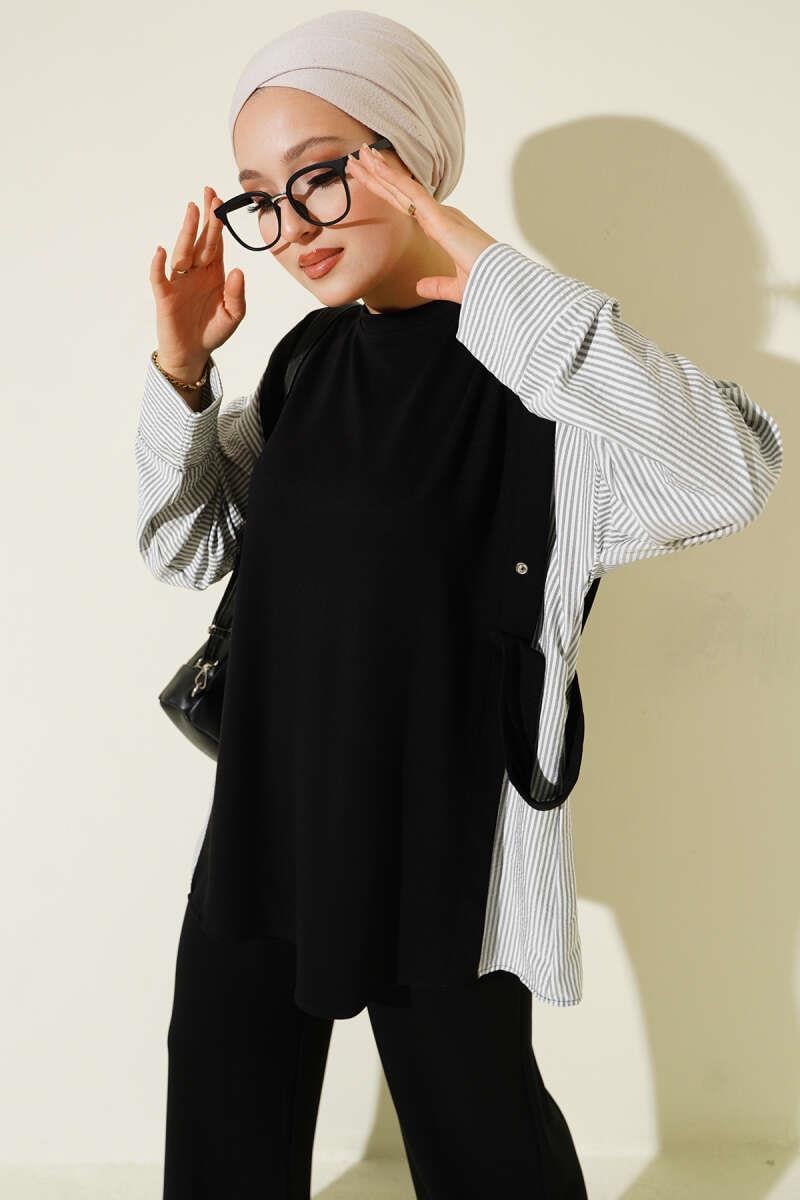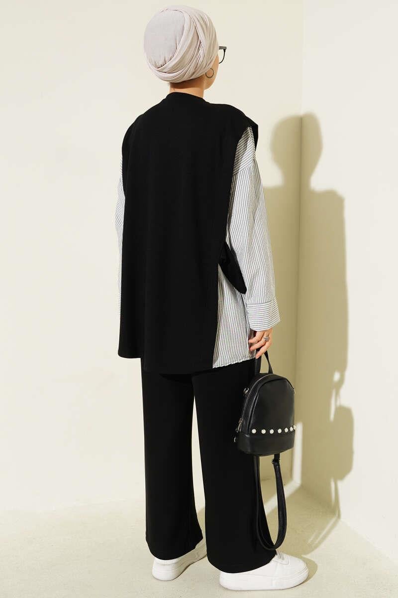 Striped Crew Neck Loysha 2 Piece Set Black (0026-3201-679339)