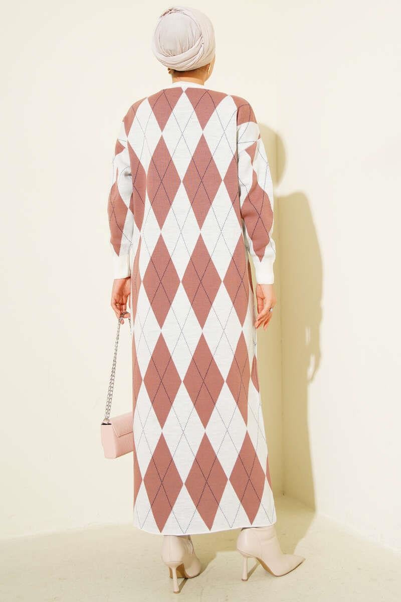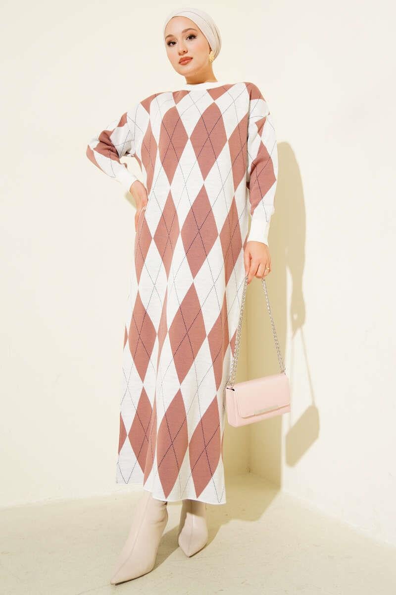 Striped Diamond Patterned Knit Dress Dusty Rose (0875-7143-677122)