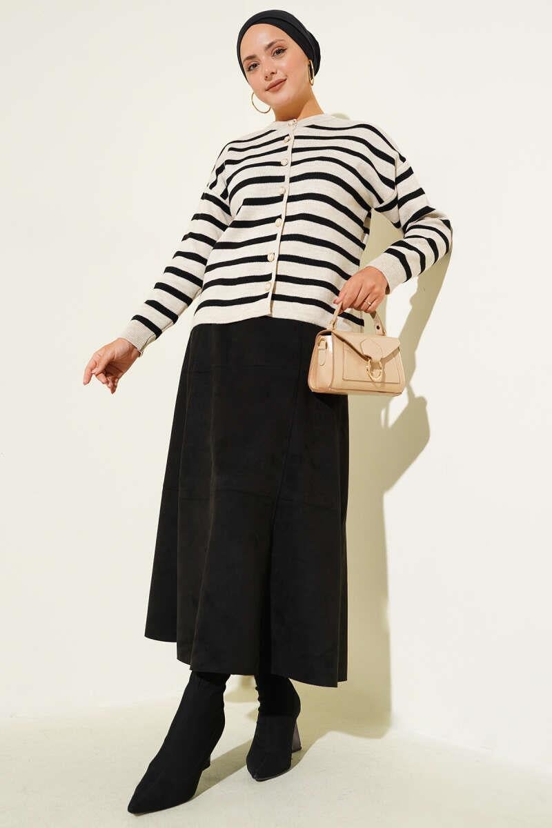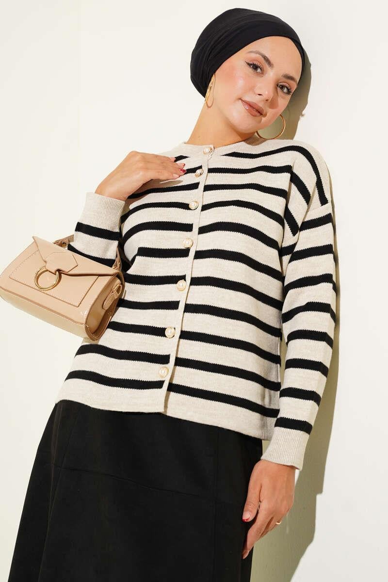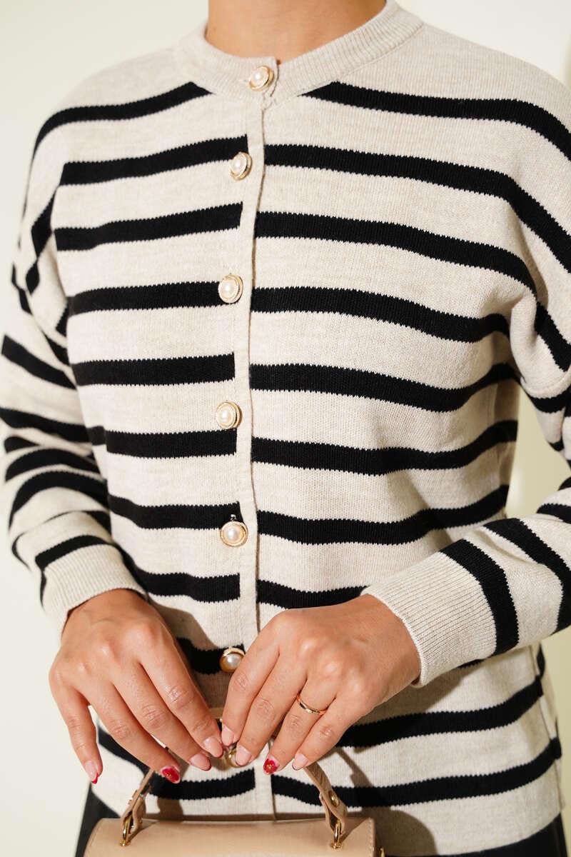 Striped Button Detailed Short Knit Cardigan Beige (0875-7035-669940)
