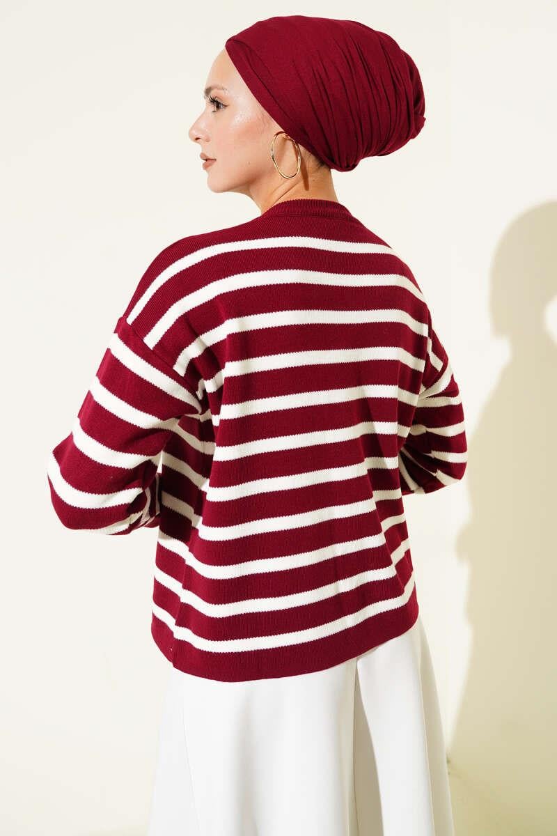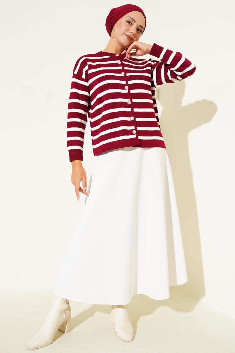 Striped Button Detailed Short Knit Cardigan Burgundy (0875-7035-669941)