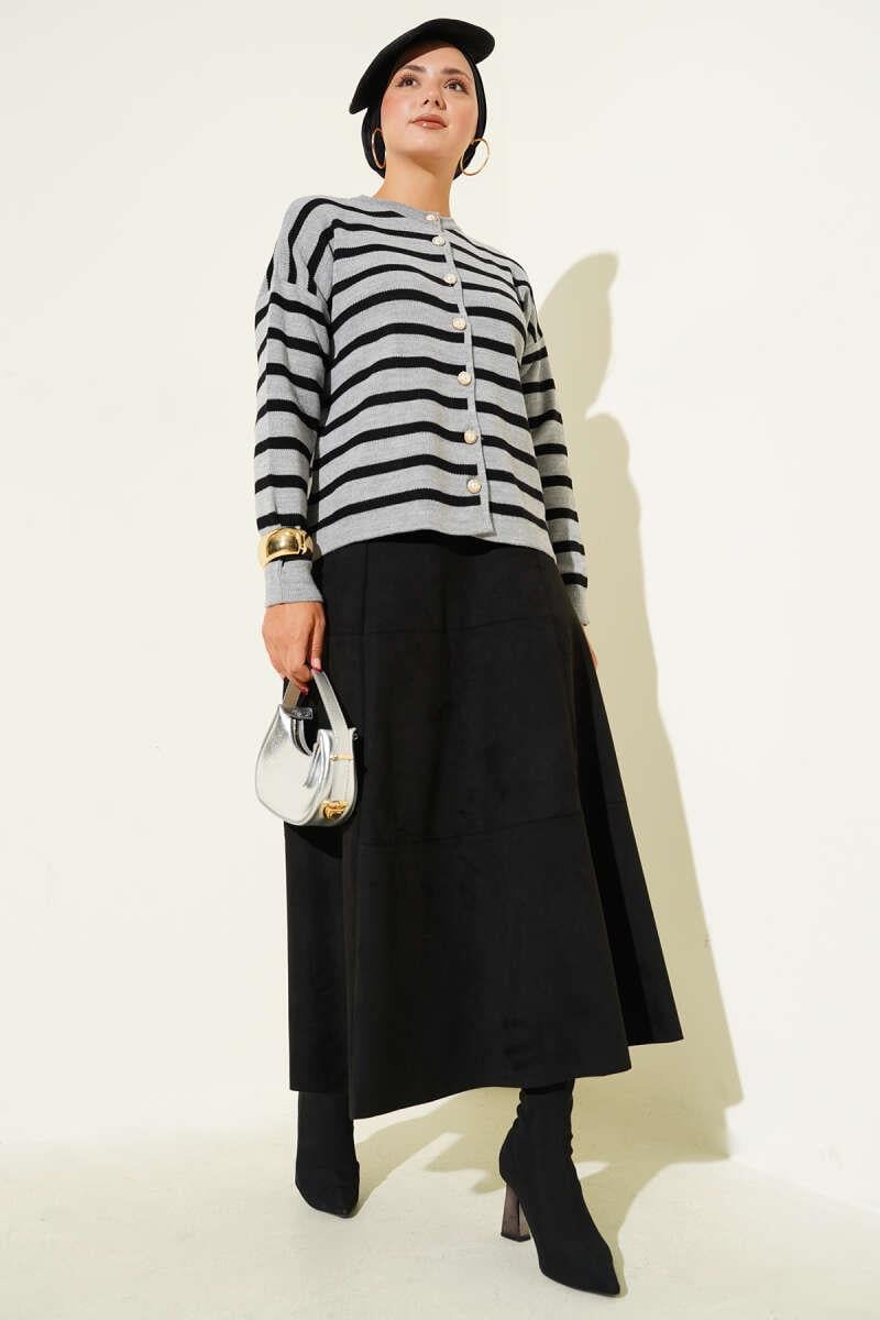 Striped Button Detailed Short Knit Cardigan Gray (0875-7035-669951)