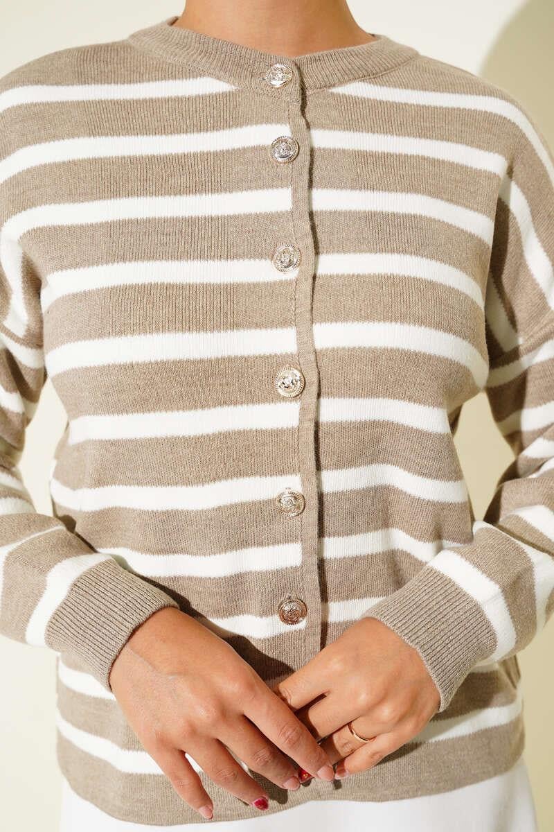 Striped Button Detailed Short Knit Cardigan Latte (0875-7035-669948)
