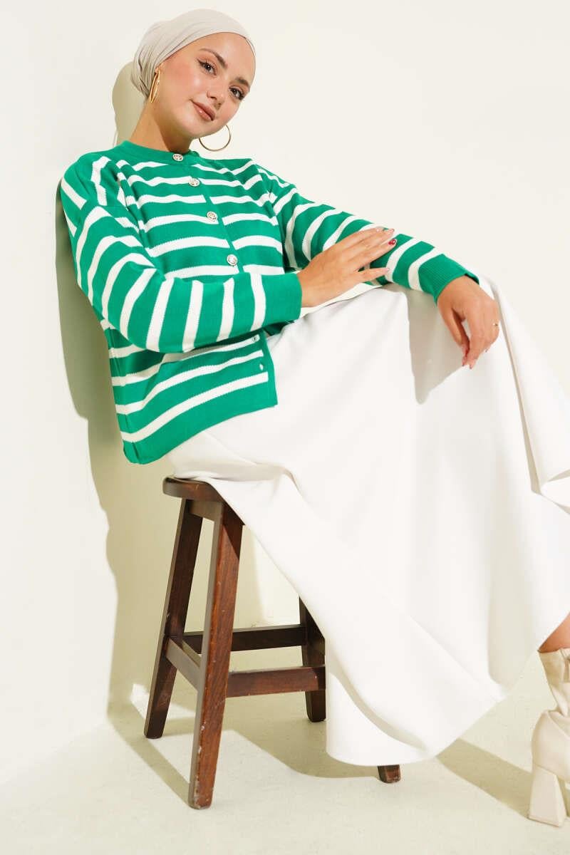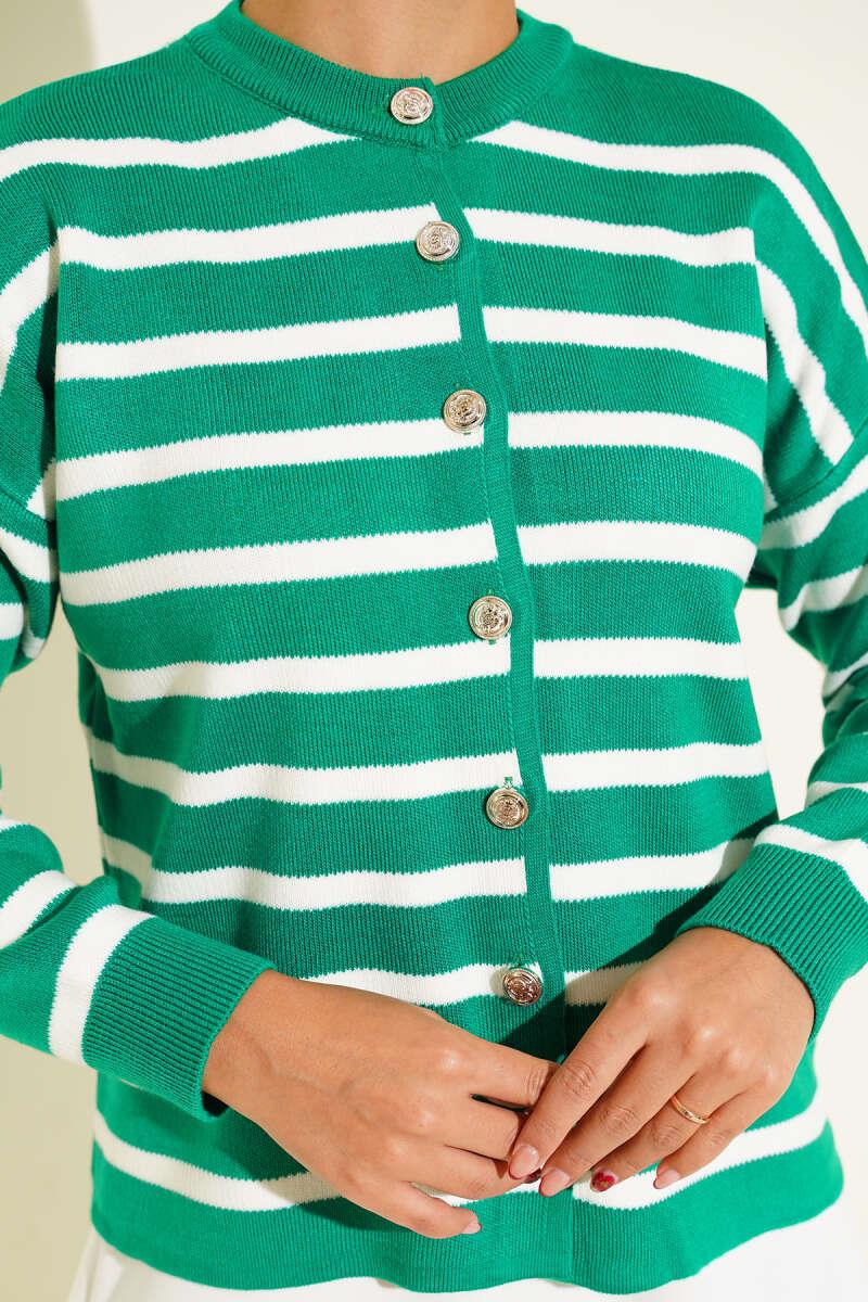 Striped Button Detailed Short Knit Cardigan Green (0875-7035-669950)