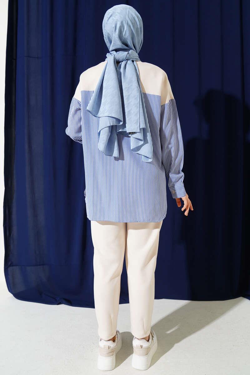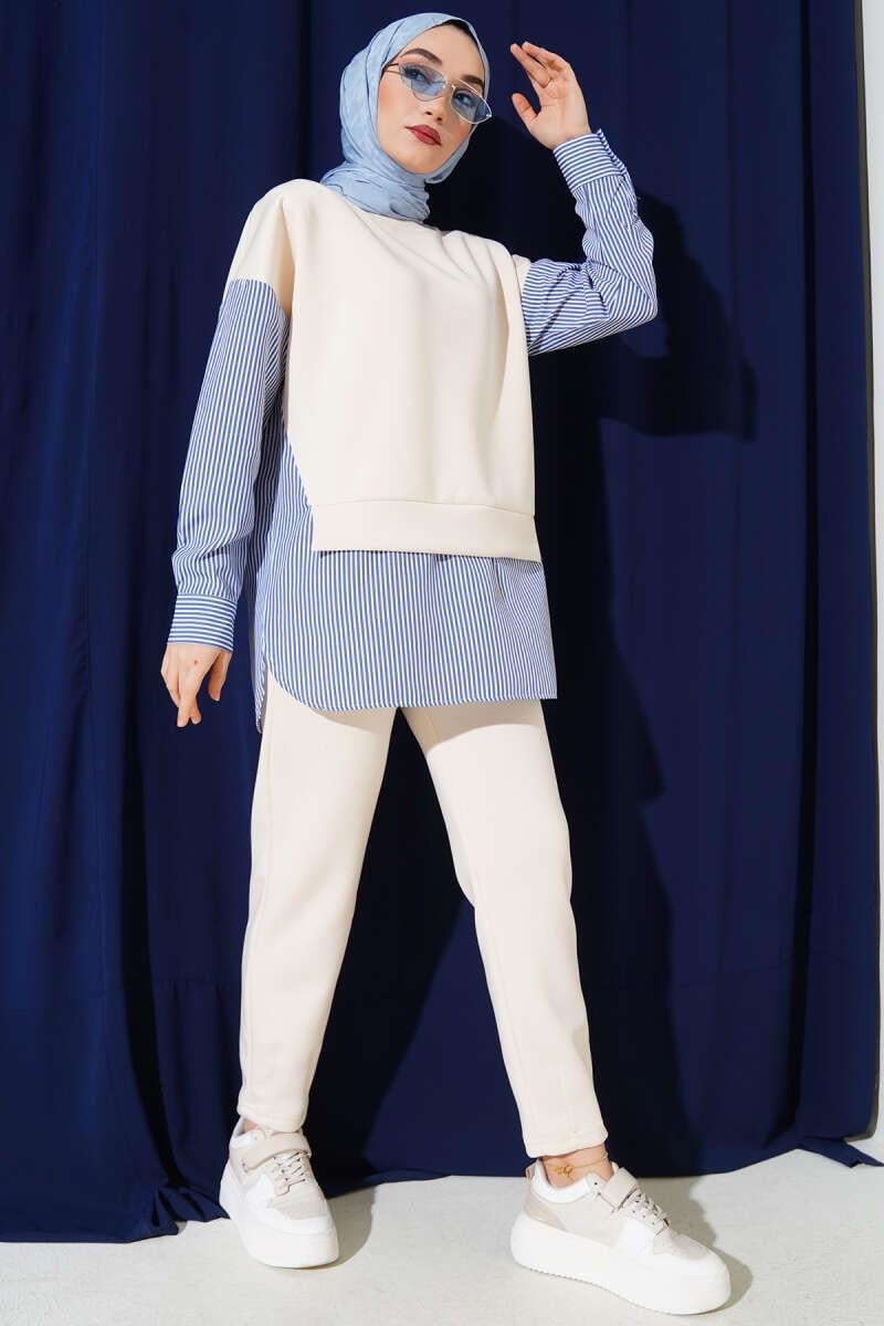 Striped Garnished Tunic 2 Piece Set Ecru (0643-15944-597902)