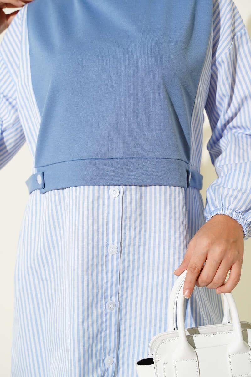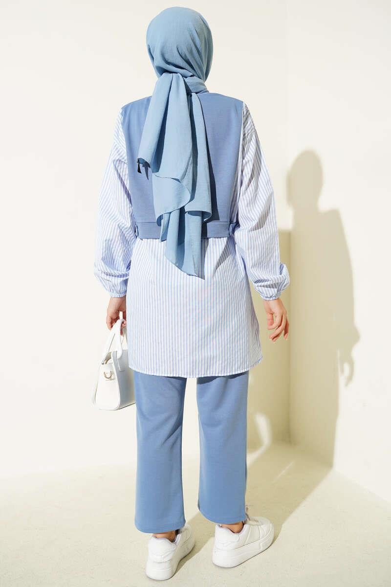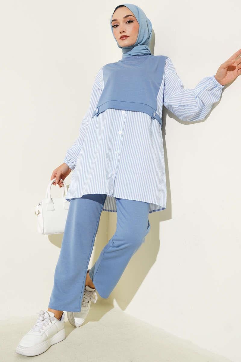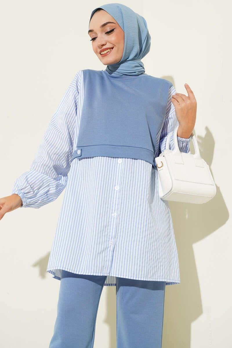 Striped Shirt Garnished 2 Piece Set Blue (0319-1128-672957)