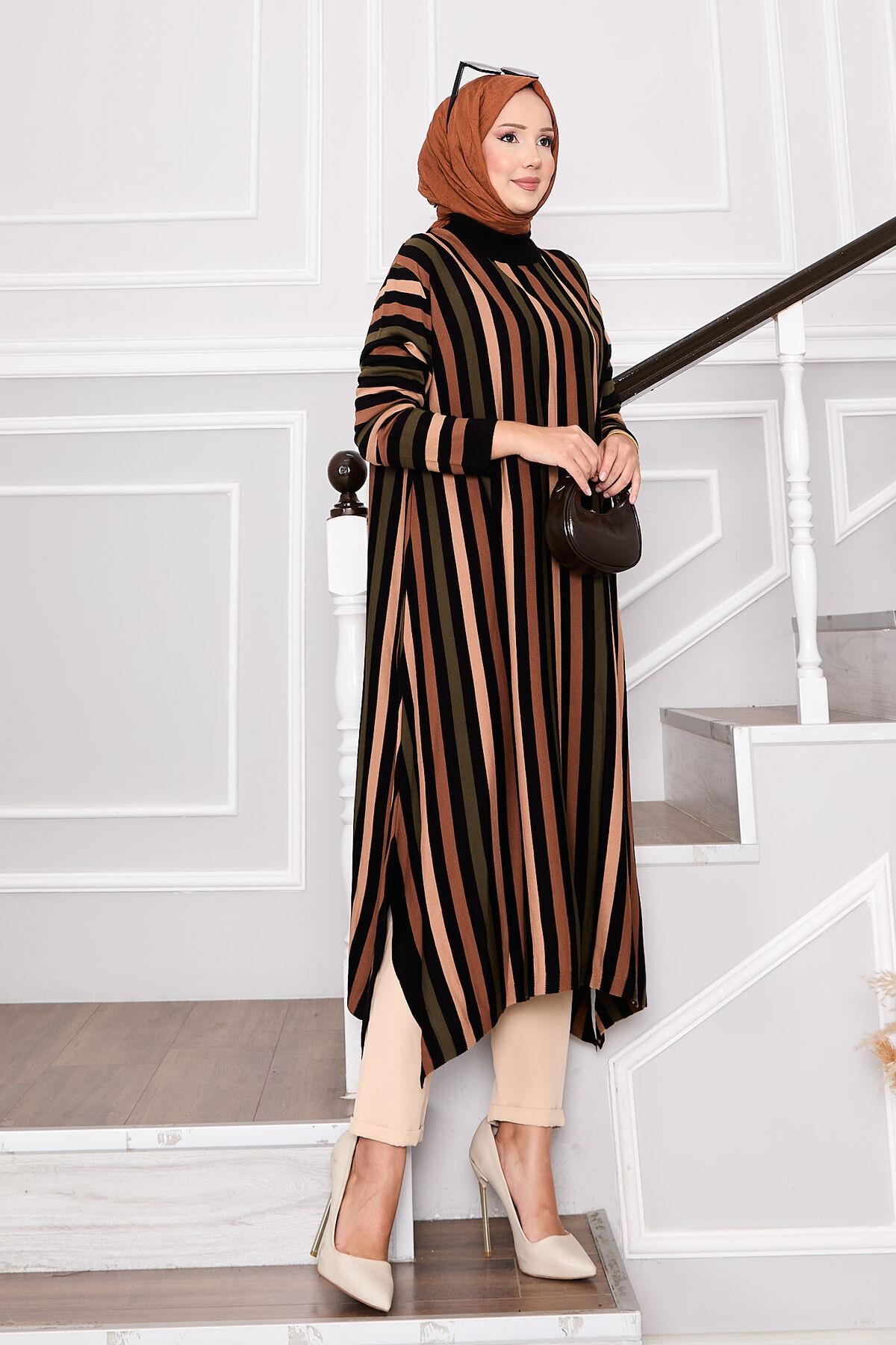 • The product is seasonal. New season asymmetrical cut long tunic with slit details on the sides, asymmetrical turtleneck tunic.