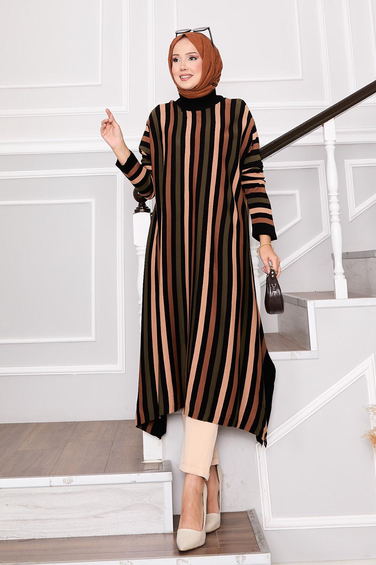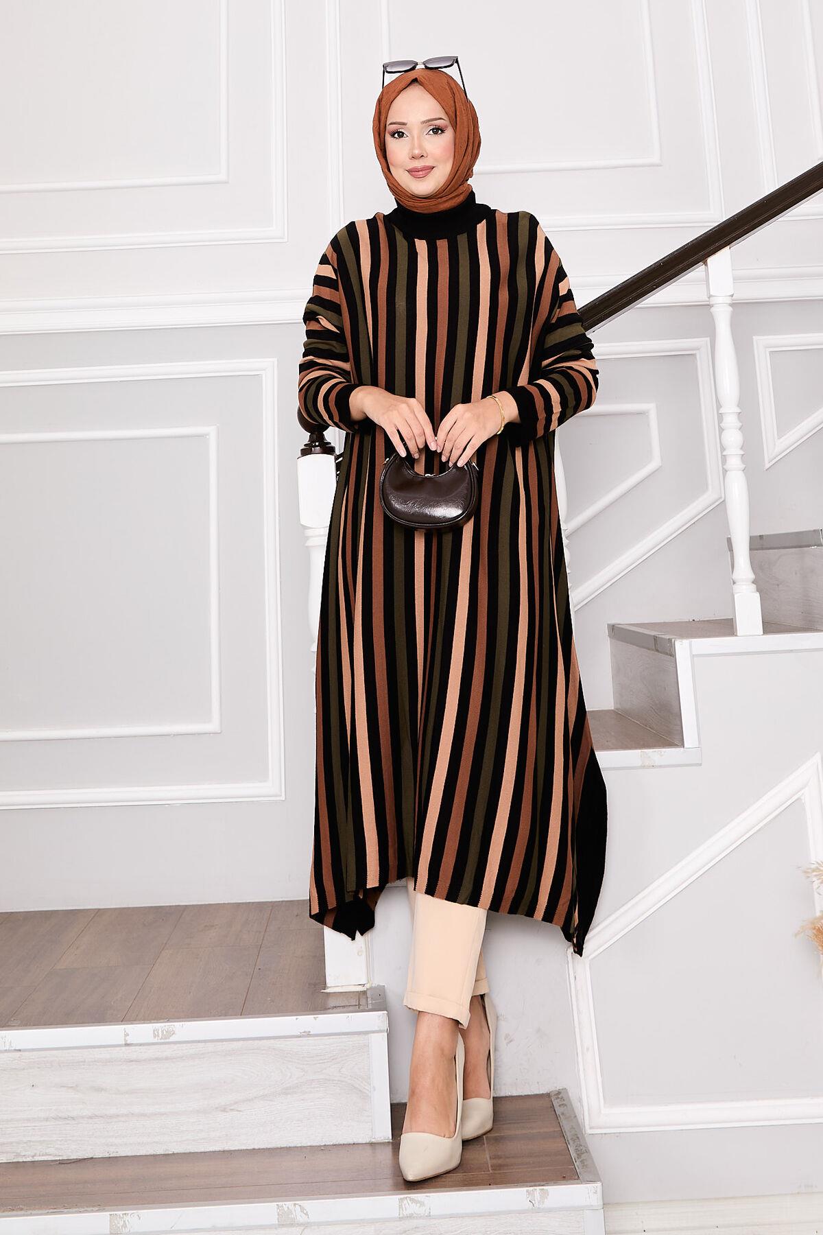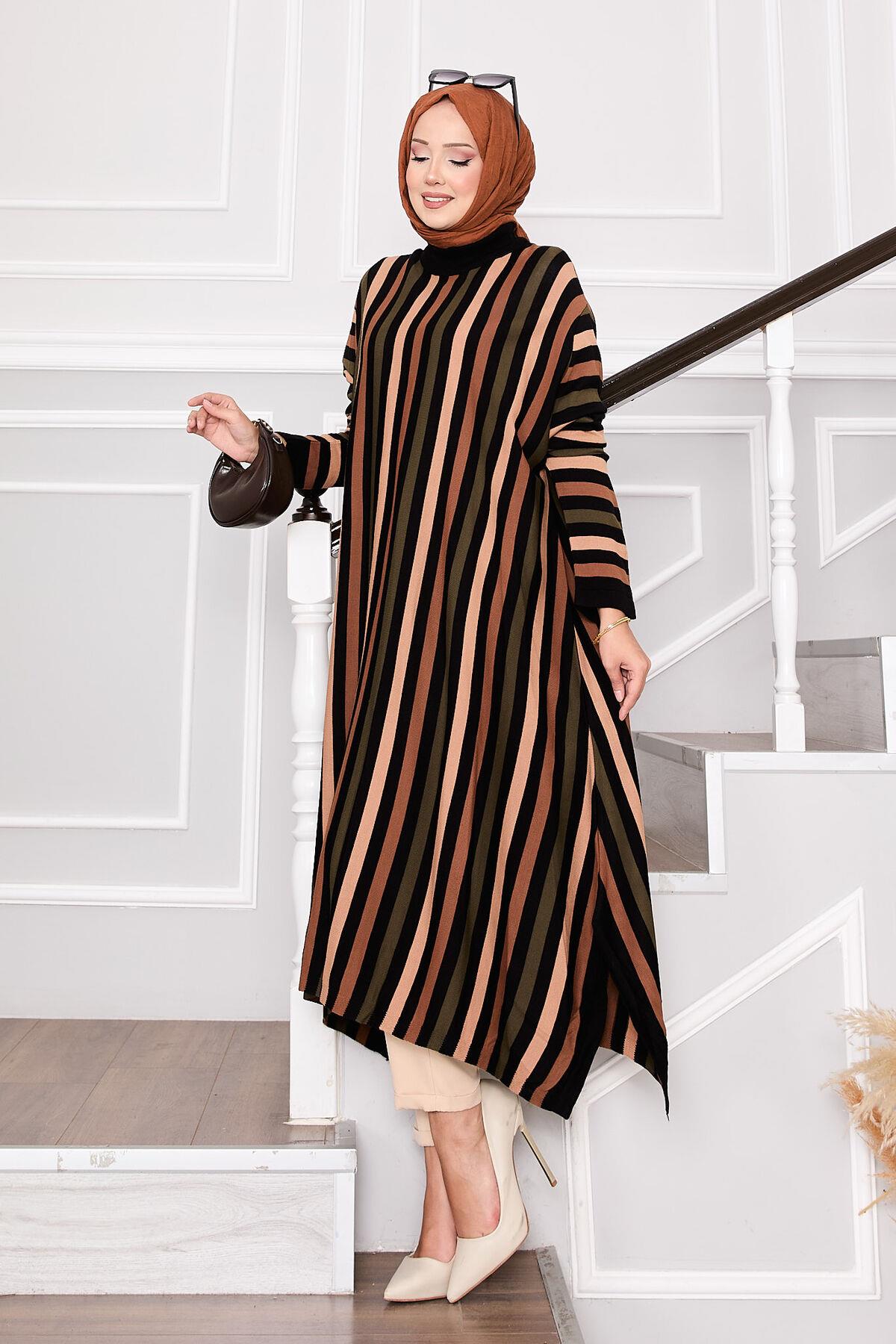 Striped Loose Knit Tunic Black (125M00325675R52STD)