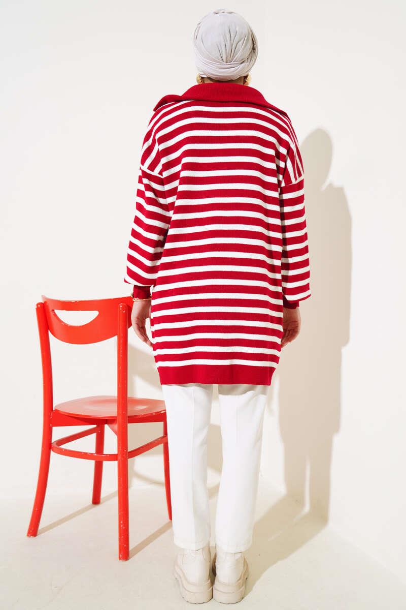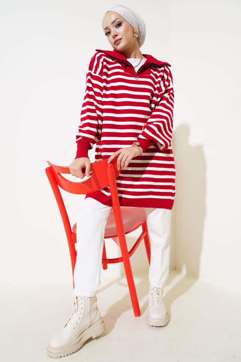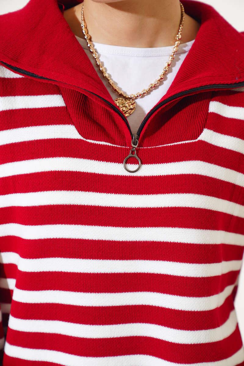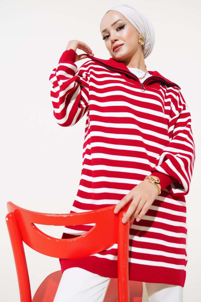 Striped Half Zipper Knitwear Tunic Red (0589-3-24-537397)