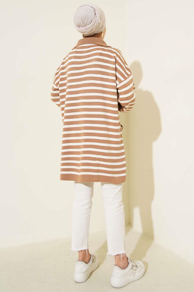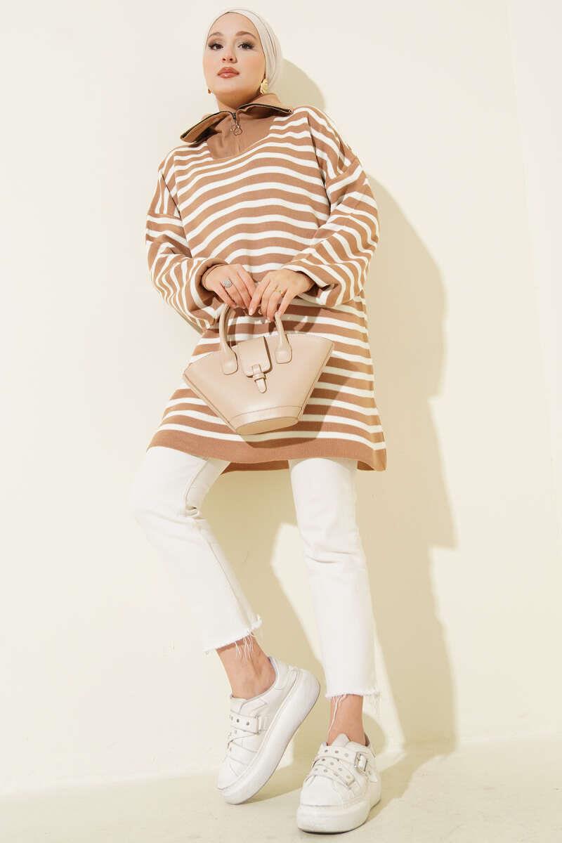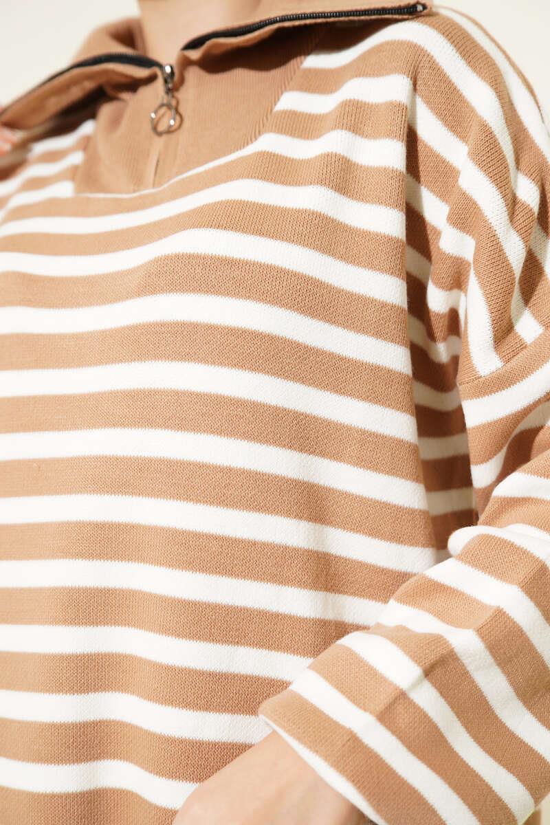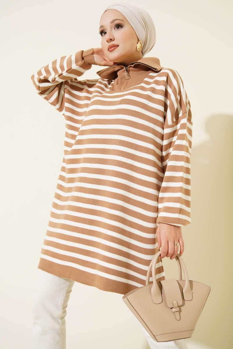 Striped Half Zippered Knit Tunic Latte (0589-3-24-674678)