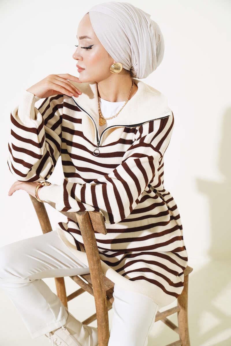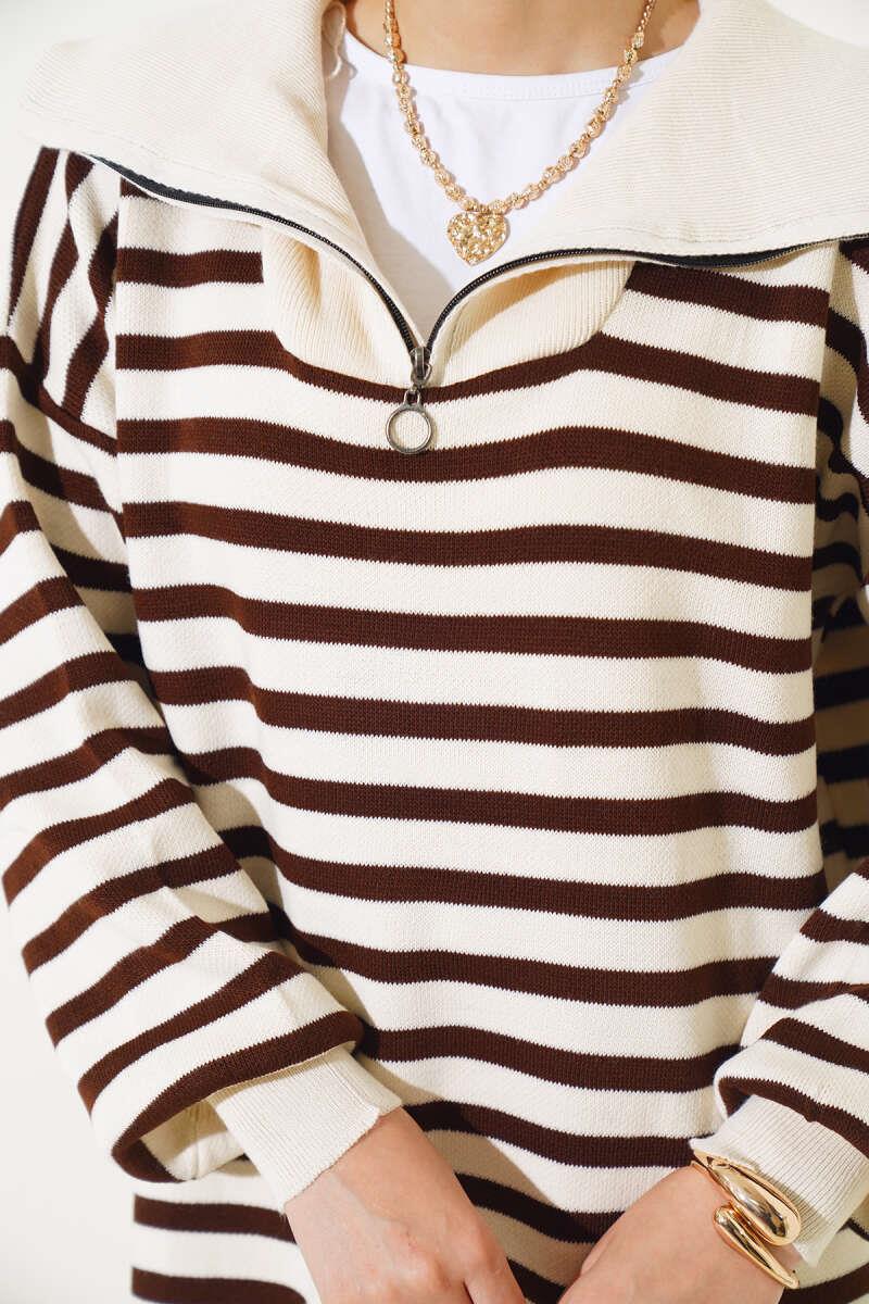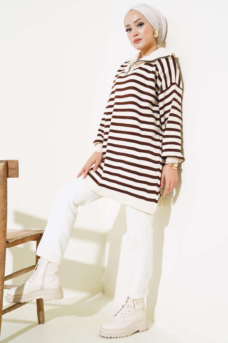 Striped Half Zipper Knitwear Tunic Stone (0589-3-24-537401)