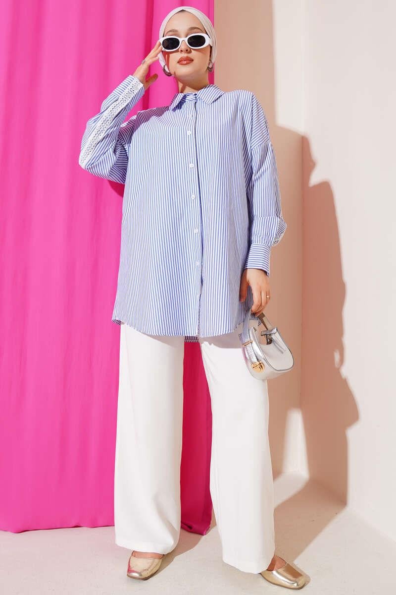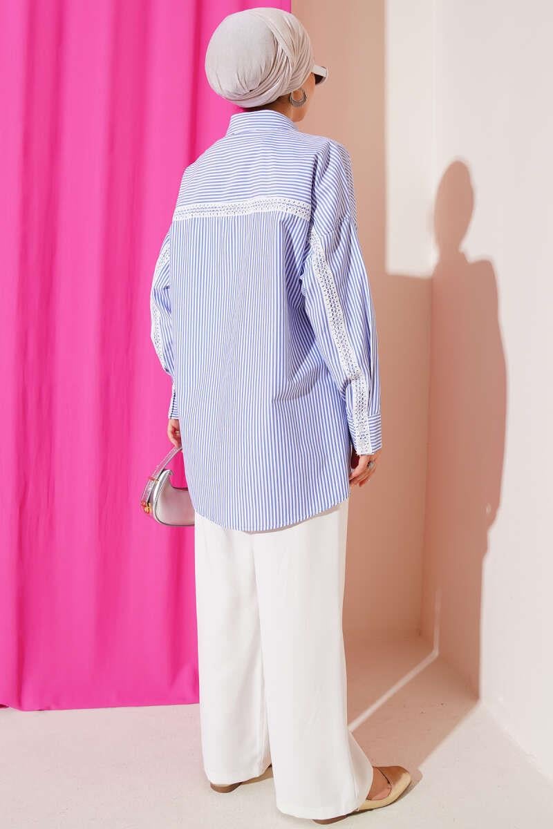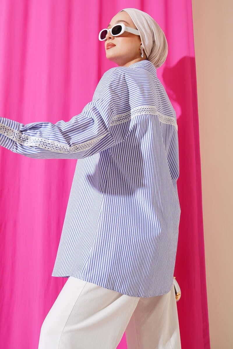 Lace Detailed Striped Shirt Blue (8091-1817-664119)