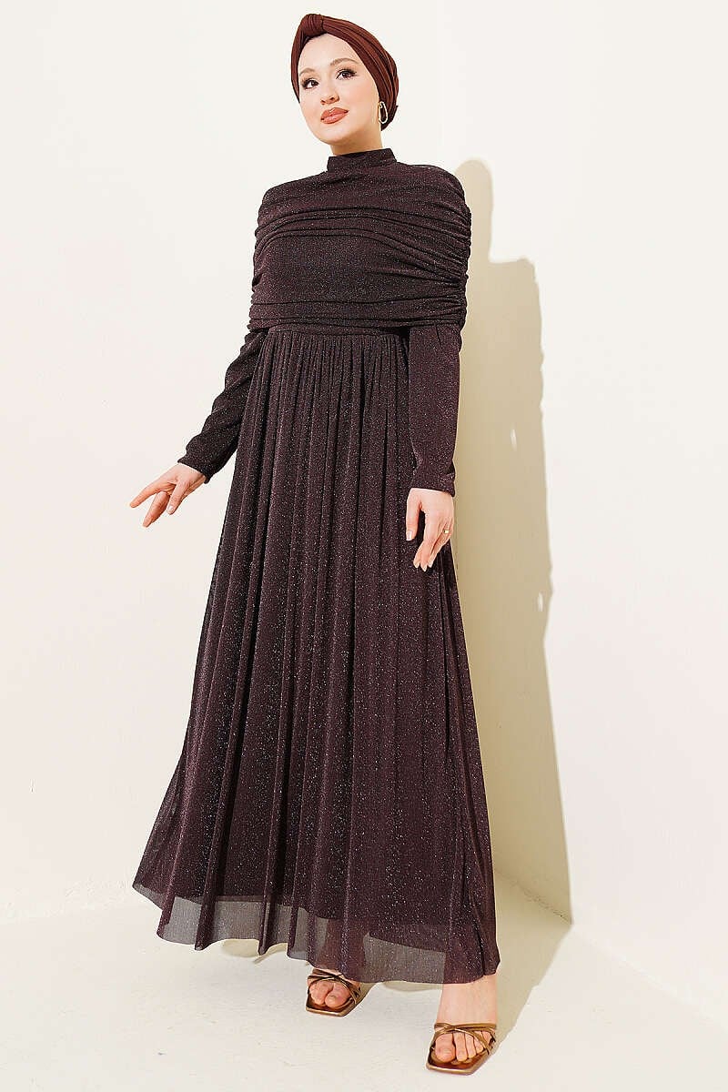 Sparkly Evening Dress with V-Neck Look, Brown (8163-4485-736510)