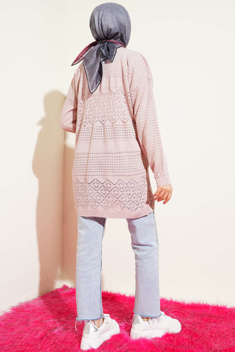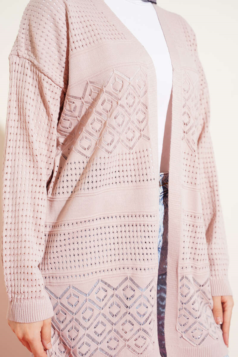 Patterned Openwork Basic Knit Cardigan Powder Pink (8374-9824-734694)