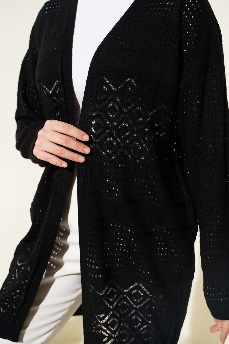 Patterned Openwork Basic Knit Cardigan Black (8374-9824-734695)